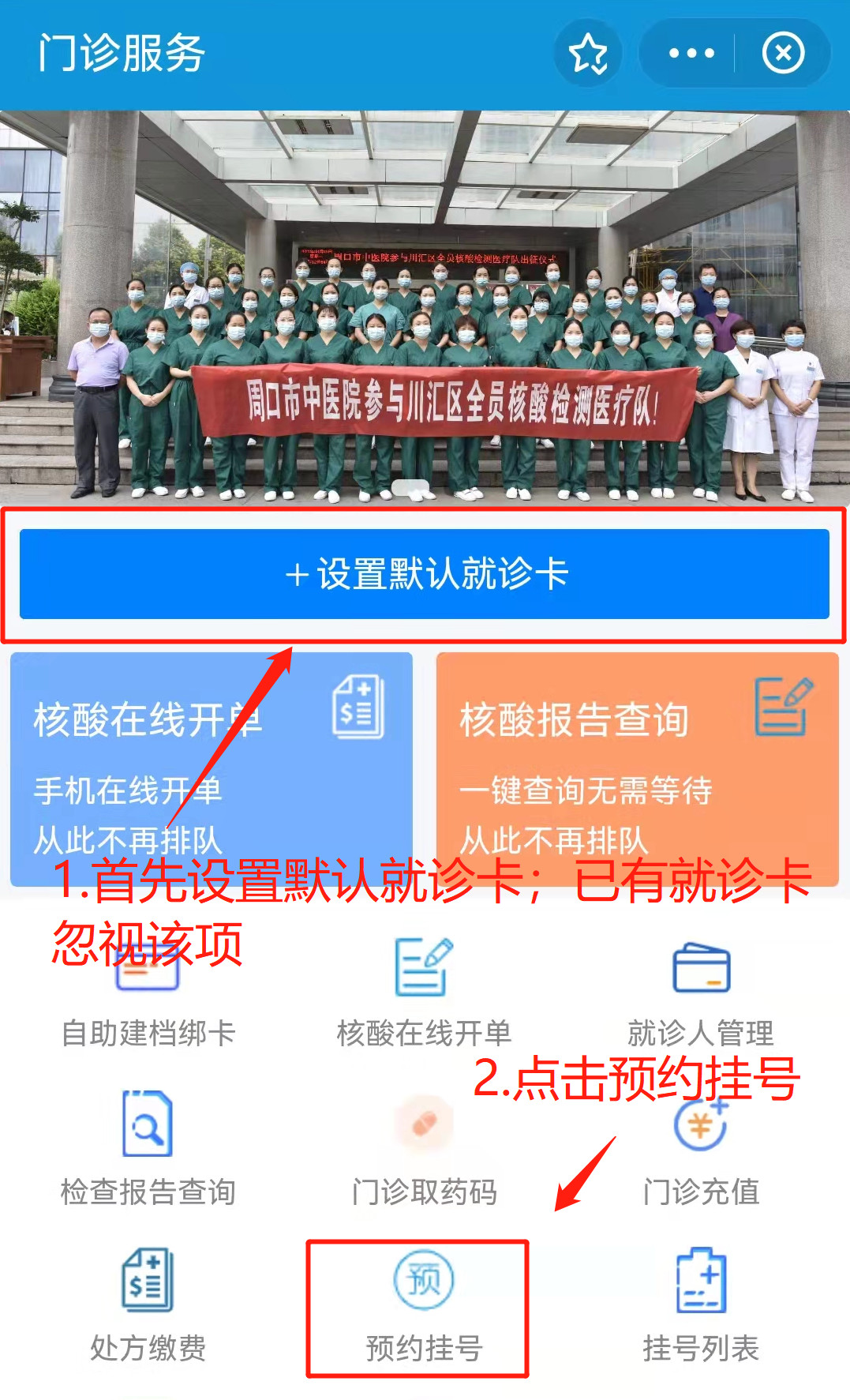 首先設置默認就診卡;若設置默認就診卡處顯示的為個人信息,直接點擊預約掛號。
