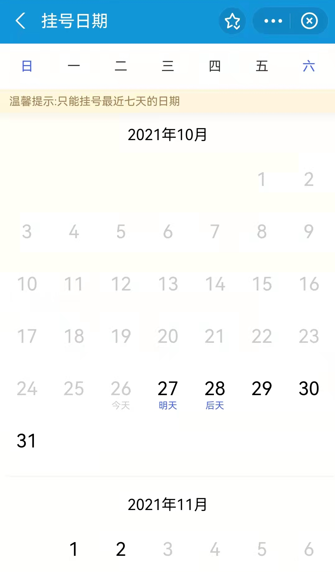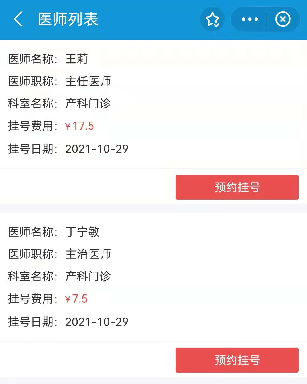 選擇需要預約的日期、科室及醫生后,點擊“預約掛號”。