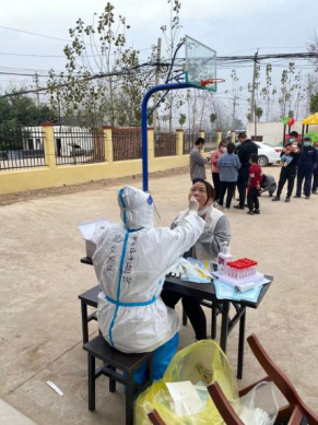 11月6日,像往常一樣我們?nèi)吮环譃槭M分別開(kāi)展核酸檢測(cè)工作,我和王曉敬老師和董月麗老師分成了三人核酸小組,去教育生產(chǎn)公司開(kāi)展核酸檢測(cè)工作。我們發(fā)現(xiàn)雖然已是第二輪檢測(cè),但是檢測(cè)量依舊是1500人!在志愿者的幫助下,接受核酸檢測(cè)的群眾已經(jīng)開(kāi)始有秩序的排隊(duì),為我們節(jié)省了大量的組織時(shí)間。作為核酸點(diǎn)組長(zhǎng)的曉敬老師,在給志愿者簡(jiǎn)單而又認(rèn)真的講解了流程以及注意事項(xiàng)的介紹后,又給我們叮囑了核酸時(shí)的安全注意事項(xiàng)。在整理好自己的防護(hù)用具后,我們又互相檢查對(duì)方的防護(hù)措施是否到位,嚴(yán)格貫徹“核酸在保護(hù)下進(jìn)行”以及“防護(hù)自己以杜絕二次傳染”的院內(nèi)政策。