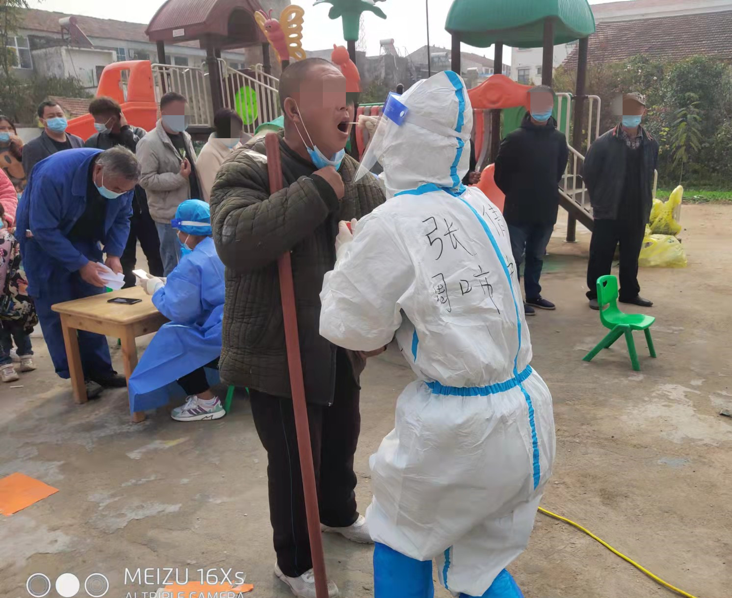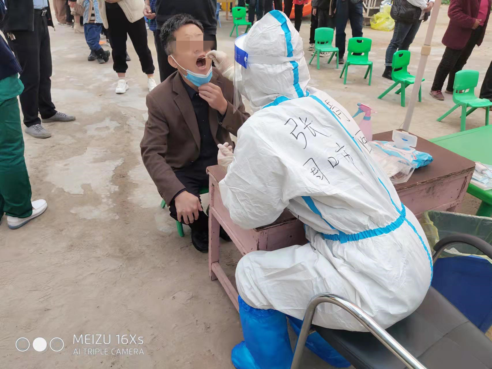6點到達扶溝衛健委,我院30名醫務人員被分配了10個點。我們負責煙草局核酸檢測采集,到達地點首先與當地的志愿者溝通物品準備,引導居民有排列,隨后開展核酸采樣工作。直到14點多,何雪花主任、王輝主任、王真真護士長前來巡查,發現我們竟然還沒有吃飯,何主任“發脾氣”說我們,必須要吃飯,保障身體才能更好支援,更好服務于他人。感謝何主任苦口婆心的關懷,感謝煙草局社區同志們的飯菜,時間真的太緊張,匆忙吃完,再次投入采樣。下午17點半,超額完成1500多位采集工作。