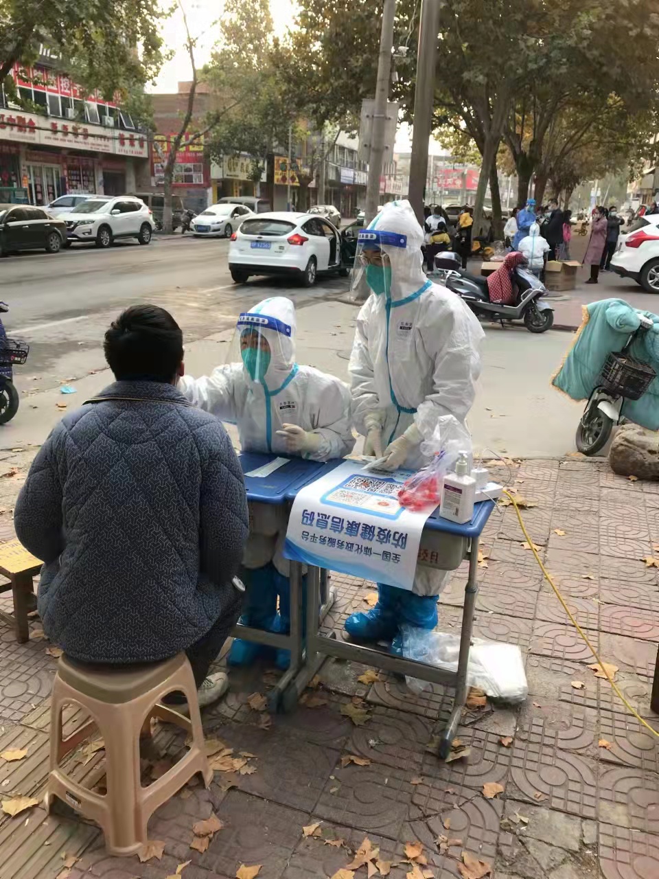 2021年11月10日,今天是我們來支援的第7天,已經開始第五輪核酸檢測工作,在隊長何雪花、副隊長王輝、王真真和控感專員謝鵬老師的合理安排下,工作有序進行,我們負責檢測地點是教育生產公司家屬院,到達采集地點,群眾們已經排好隊,井然有序,不顧嚴寒,全力配合。我們三人一組,組員有聰明伶俐的孔文哲護士,陽光開朗的王曉敬護士和我負責核酸采集工作,每天的工作量1500~2000人,但經過前幾輪的順利開展,醫護人員和志愿者們及社區負責人,已經配合的非常默契,所以我們每天的核酸采集工作進行的都很順利。能保質保量的完成分配任務,社區大姨每次結束時都會笑著給我們豎起大拇指連聲說:“這三個小姑娘真能干,厲害著呢。”我印象最深的是在一次采集過程中,一位叔叔大聲對我說“感謝政府沒有漏掉每一個人,也感謝周口市中醫院真正的為人民服務,你們辛苦啦”。志愿者們是我們的好搭檔,我們年紀相仿又有很多話題,年輕人為祖國為家鄉都是熱血沸騰,不怕苦不怕累,和我們一起并肩作戰到最后一刻。在一起我們收獲深厚的友誼互稱彼此為隊友。社區工作人員大叔大姨每天早早的開始維持秩序,雖然天氣寒冷,但是每個人的心里都是熱乎乎的。此時此刻,大家共同的心愿都是抗疫成功,疫情不退我們不退。