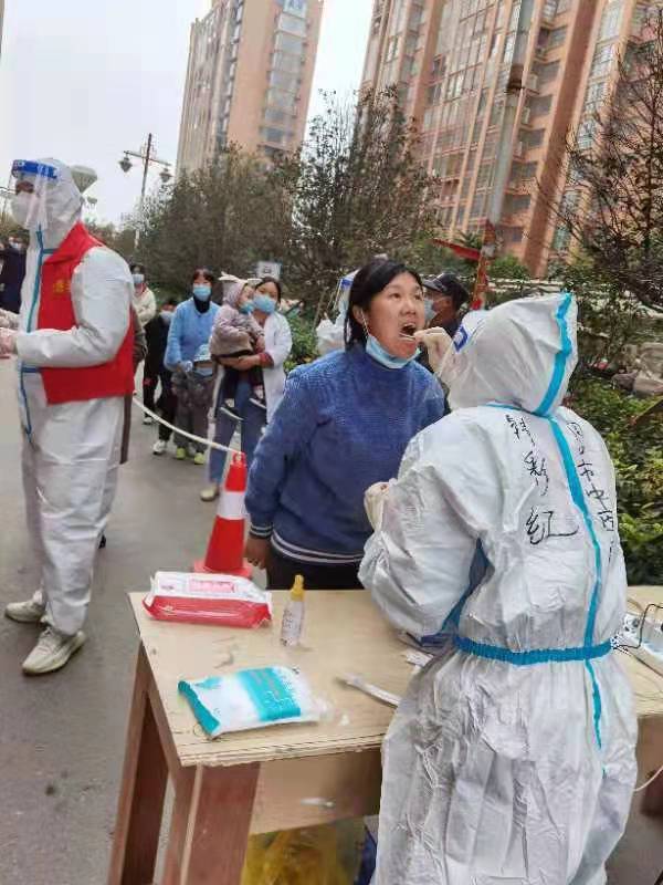 社區工作人員告訴隊長:“你們的這位同事非常能干,我觀察了,她的動作最熟練,采樣最快、最多。”