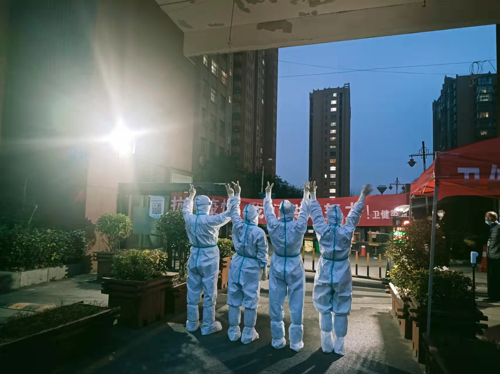 11月4日采集的第一天,我們醫院被分配了10個采集點,我和張贊姐、張娜姐、冬冬分到了一組,她們都去過發熱門診,都參與過核酸的采集,只有我是第一次參與,當時心里很擔心,害怕因為自己而影響整個小組的進度,到了采集點之后她們不厭其煩的教我怎樣穿脫防護服和核酸采集的方法等等,我知道了我的擔心是多余的,在接下來的幾天我們配合的越來越默契,我們小組一直負責采集人數最多的點,但我的隊友們從不喊累,每次都能迅速地完成任務。