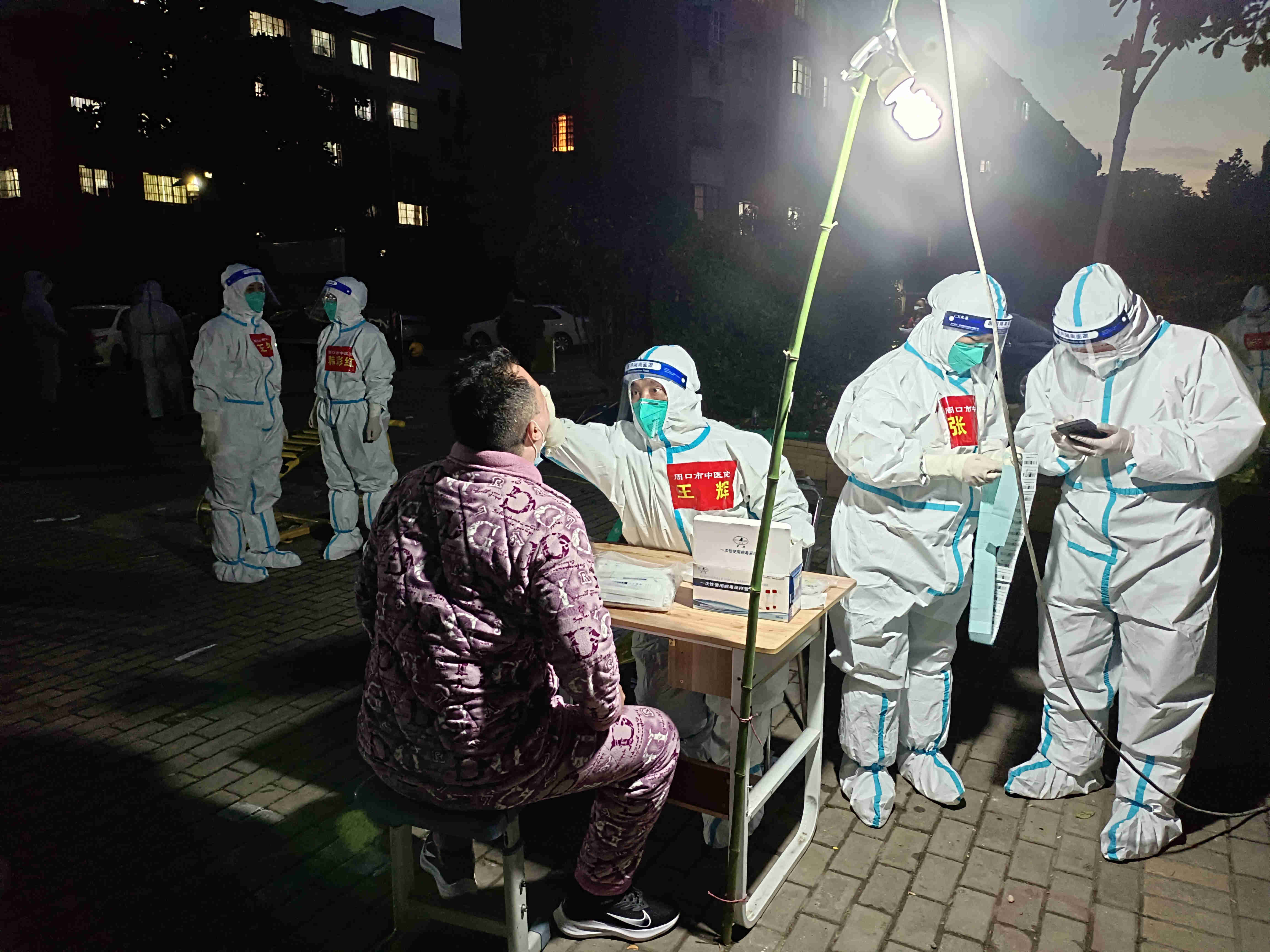 每天早晨五點,由蘇四霞老師、高麗娟老師和我組成的三人小隊每天準時出發,我們負責的是工會的采集點,到達采集點后,就會有志愿者幫助我們掃碼登記,一天又一天,我們也漸漸的從第一天的生疏到密切配合。當穿好防護服,有一位志愿者走到我身邊“嘿,小伙,我們兩個搭檔越來越熟悉了,今天我們還是一隊,加油哦。”我們兩個相視一笑,進入緊張的采集工作。“叔叔辛苦了,謝謝叔叔”,“醫務人員辛苦了,謝謝你們支援扶溝”……這是在給當地居民核酸檢測采樣后聽到的最多的話,這也是我每天采集核酸最大的動力。