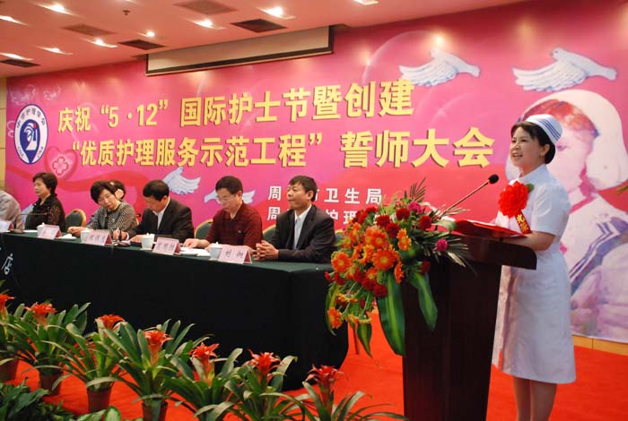 護理部主任司亞雪代表周口市護理學會宣讀對全市護理工作者的倡議書,張紅梅代表優秀護士發言。 (護理部 張艷秋)