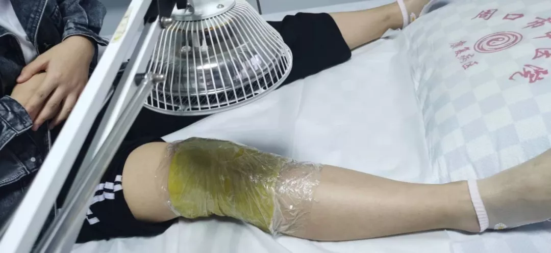 6、中藥硬膏治療:治療前取適量骨痹散,加入中藥膏中,微波爐加熱后調均,敷于膝關節(jié)患處,涂抹面積>疼痛腫脹部位,藥厚0.5-1cm。根據(jù)所需溫度,必要時使用紅外線燈照射藥膏30分鐘,保留1小時后取下硬膏。