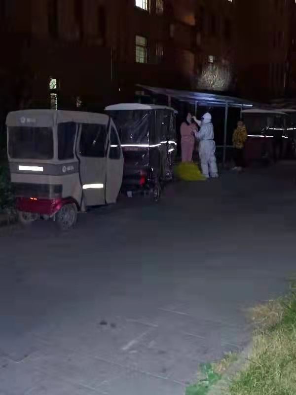 疫情形勢嚴峻,我們在與病毒賽跑。每天的采集任務十分艱巨。凌晨四點起床,五點準時出發,到達封控區域入戶采集核酸。檢查他們穿戴好的防護用品,反復詢問口罩是否做閉合實驗、是否存在漏氣、面屏擋眼、手套戴著不合適等問題。同時叮囑他們采集時要做到一人一消毒,及時更換手套和面屏,他們和我開玩笑說我是“復讀機”。由于住戶較分散,需要步行前往,防護鞋套磨損嚴重,隊員們都是踮著腳走路,看著本身就笨重的身影,走路姿勢的“怪異”不禁模糊了雙眼。