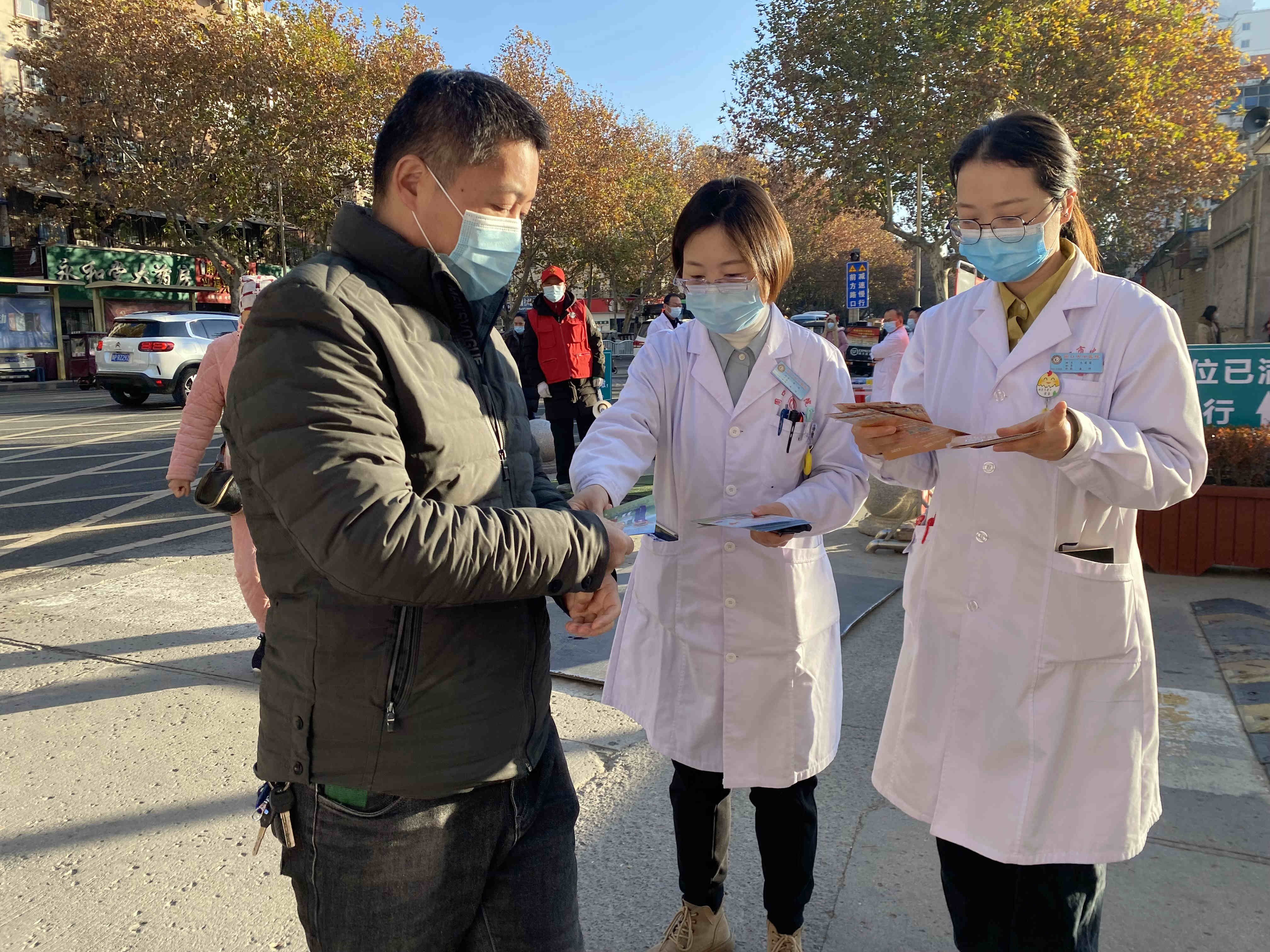 12月1日,在周口市中醫(yī)院大門(mén)口“世界艾滋病日”義診活動(dòng)現(xiàn)場(chǎng),疾控科、醫(yī)務(wù)科、肝病科、感染性疾病科、營(yíng)養(yǎng)科通過(guò)懸掛橫幅標(biāo)語(yǔ),發(fā)放宣傳折頁(yè)、宣傳袋、安全套、播放科普視頻,擺放展板、現(xiàn)場(chǎng)講解等形式,向過(guò)往的群眾宣傳艾滋病的傳播途徑、預(yù)防措施,以及艾滋病的主要癥狀、對(duì)社會(huì)造成的危害等相關(guān)知識(shí),引導(dǎo)群眾正視艾滋病,以積極、正確的態(tài)度看待艾滋病感染者。