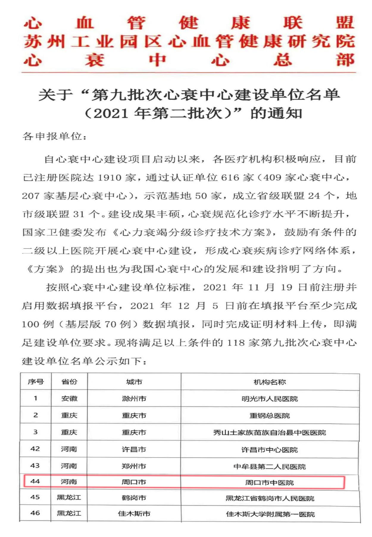 自我院心衰中心建設(shè)啟動(dòng)以來(lái),在院領(lǐng)導(dǎo)的大力支持、全院各相關(guān)科室積極配合共同努力下,心衰中心多次召開(kāi)質(zhì)控會(huì)和業(yè)務(wù)培訓(xùn)會(huì),積極推進(jìn)申請(qǐng)認(rèn)證工作。最近,在心血管健康聯(lián)盟、心衰中心總部聯(lián)合發(fā)布的“第九批次心衰中心建設(shè)單位名單(2021年第二批次)的通知”中,全國(guó)共有118家單位滿足建設(shè)單位要求,我院名列其中。