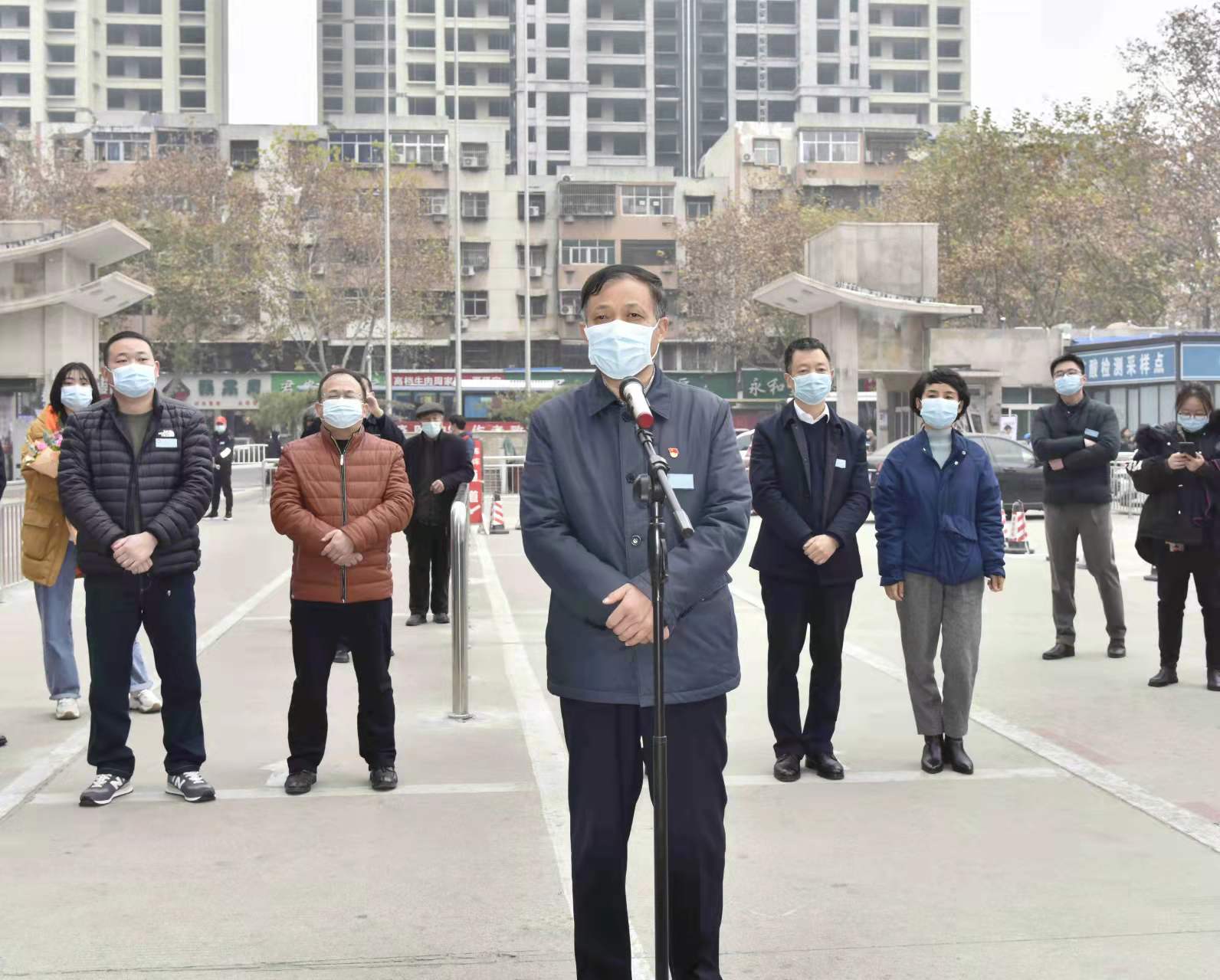 副院長(zhǎng)史衛(wèi)東致詞,你們平安回來(lái),我們心上的石頭終于落下了,全院職工都在盼著大家歸來(lái),歡迎大家回家。扶溝突發(fā)疫情,周口市中醫(yī)院第一時(shí)間組織醫(yī)療隊(duì)支援扶溝核酸采集工作,11月3日晚,接市衛(wèi)健委通知組建支援扶溝醫(yī)療隊(duì)的任務(wù),4日凌晨,我院30名醫(yī)務(wù)人員奔赴扶溝支援核酸檢測(cè)工作,通過(guò)37個(gè)日日夜夜,每天10個(gè)工作臺(tái),入戶(hù)3666次,共采集核酸144236人次,在這些數(shù)字的背后,是你們的艱辛、你們的付出才支撐了這些數(shù)據(jù),我們中醫(yī)院人為你們感到驕傲、自豪。11月8日,我們接到川匯區(qū)政府通知,派出五人醫(yī)療隊(duì)到扶溝支援核酸采樣,他們已先期歸來(lái)。11月13日14日,我們接到市疫情防控指揮部通知,先后派出兩名中醫(yī)專(zhuān)家和一名控感人員到扶溝永善醫(yī)院參與500余人次密接者的中醫(yī)參與治療和控感防控指導(dǎo),你們都出色完成了任務(wù),為市中醫(yī)院在扶溝贏得了榮譽(yù),在此對(duì)醫(yī)療隊(duì)院凱旋表示最誠(chéng)摯的歡迎!