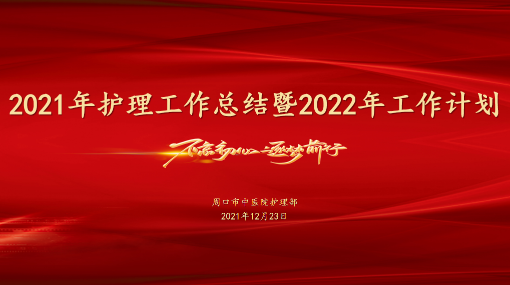 迎新辭舊抒胸臆,共譜醫壇錦繡篇。12月23日下午,周口市中醫院護理部組織召開了以“不忘初心,逐夢前行”為主題的年度護理工作總結匯報會。護理部主任張紅梅、全院科室護士長及科室骨干參加了匯報會。會議由護理部王真真護士長主持。