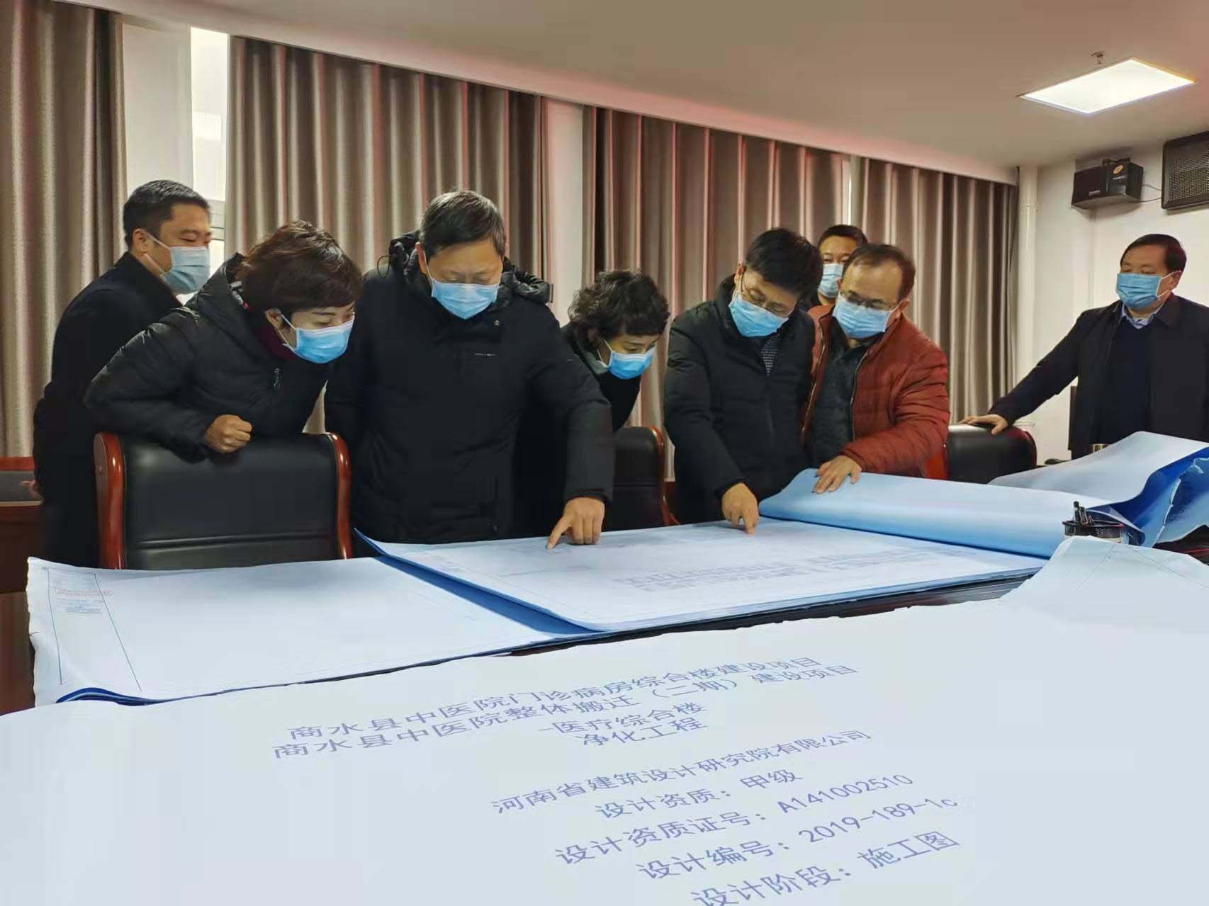 調(diào)研組專家查看了商水縣中醫(yī)院新院區(qū)的裝修設計圖,并對工作中存在的困難展開討論給出指導意見。