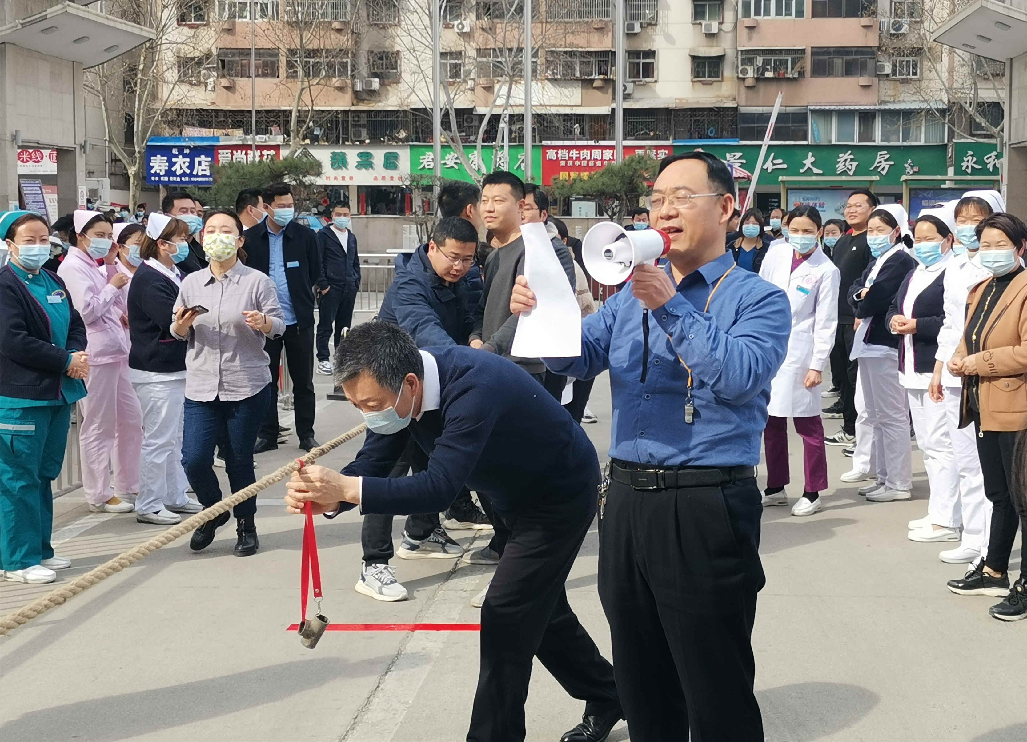 為慶祝“三八”國際婦女節(jié),豐富廣大職工的文體生活,提高職工身體素質(zhì),增強(qiáng)團(tuán)隊(duì)合作精神,3月4日下午,周口市中醫(yī)院在門診樓前舉行了迎“三八”婦女節(jié)拔河比賽活動(dòng)。