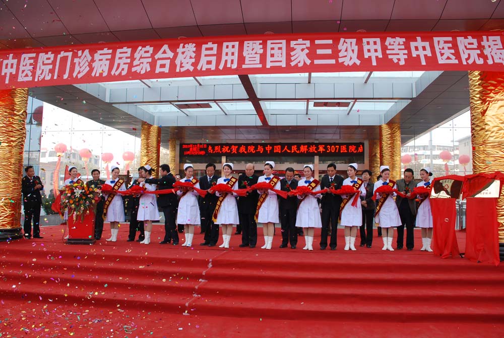 在熱烈的掌聲、鞭炮聲和繽紛的禮花中,省衛生廳副廳長、省中醫管理局局長夏祖昌、周口市委宣傳部長梅寶菊為周口市中醫院“國家三級甲等中醫院”揭牌。解放軍307醫院副政委魏建國、市衛生局局長解冰山為“解放軍307醫院協作醫院”揭牌。