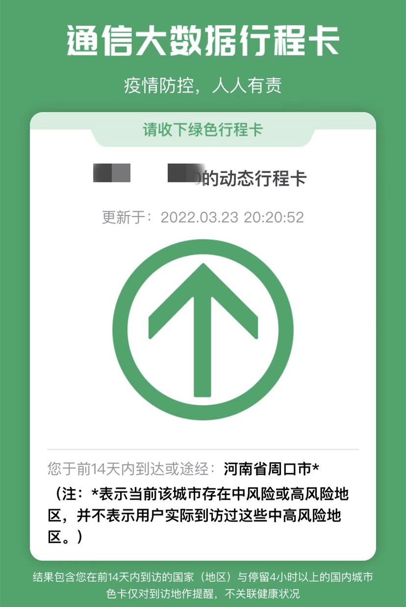 是的!通訊行程卡可以查詢個人在前14天內的國內和國際行程。它精確到中國的省市(停留時間超過4小時)和外國的國家。14天后訪問的城市將不顯示。