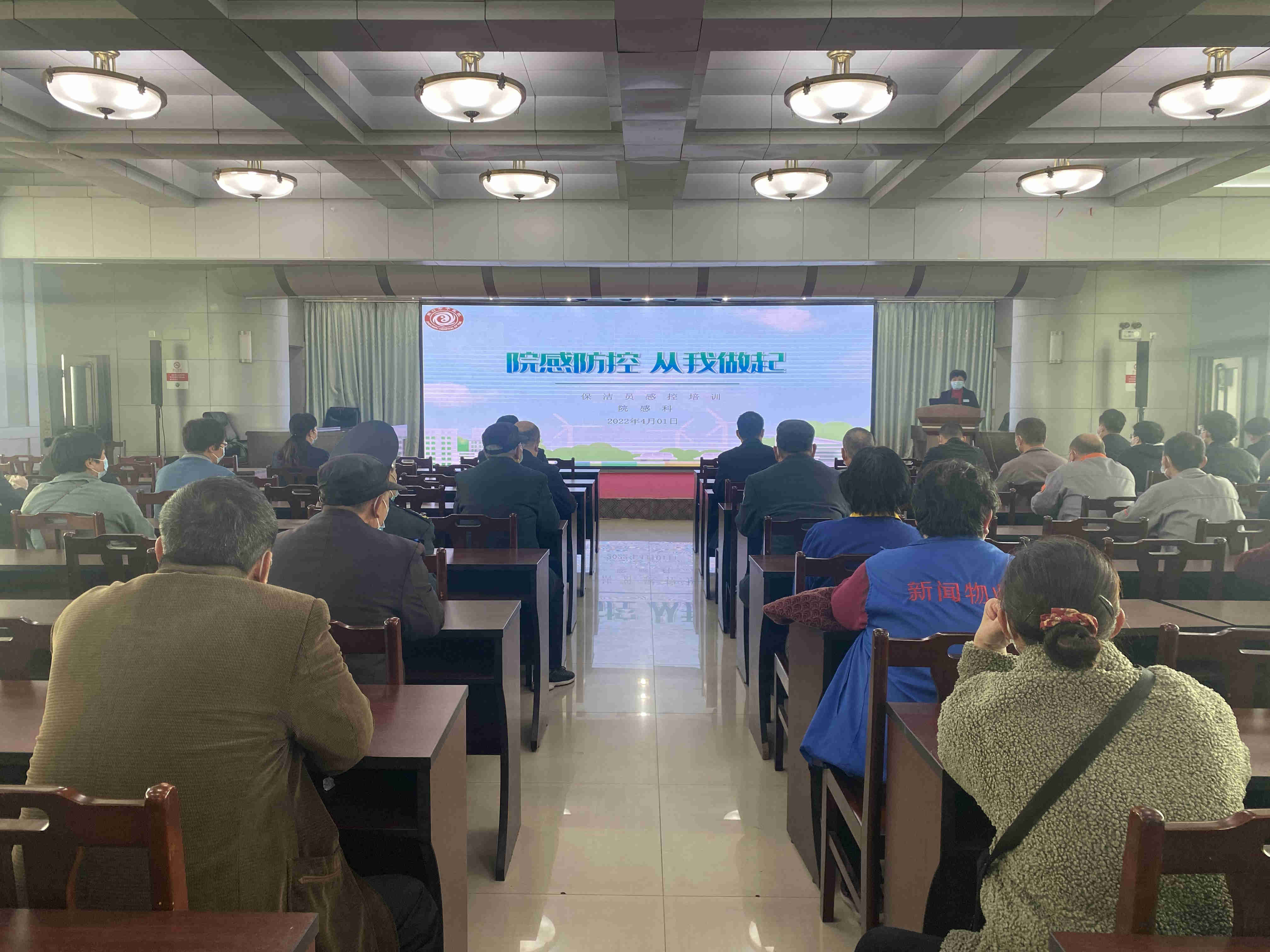 2022年4月1日下午,周口市中醫院在行政樓六樓會議室舉行主題為“院感防控,從我做起”的感控知識培訓會,會議由大樓管理科楊立志科長主持,感控科宋俊娥、郭文娟兩位老師對大樓管理科全體成員和新聞物業、綠潁物業60余名保安、保潔、電梯員、維修人員進行新型冠狀病毒感染肺炎防控知識培訓,進一步加深了工勤人員對院感防控知識的了解,對如何防控新冠肺炎病毒感染做好充分準備。