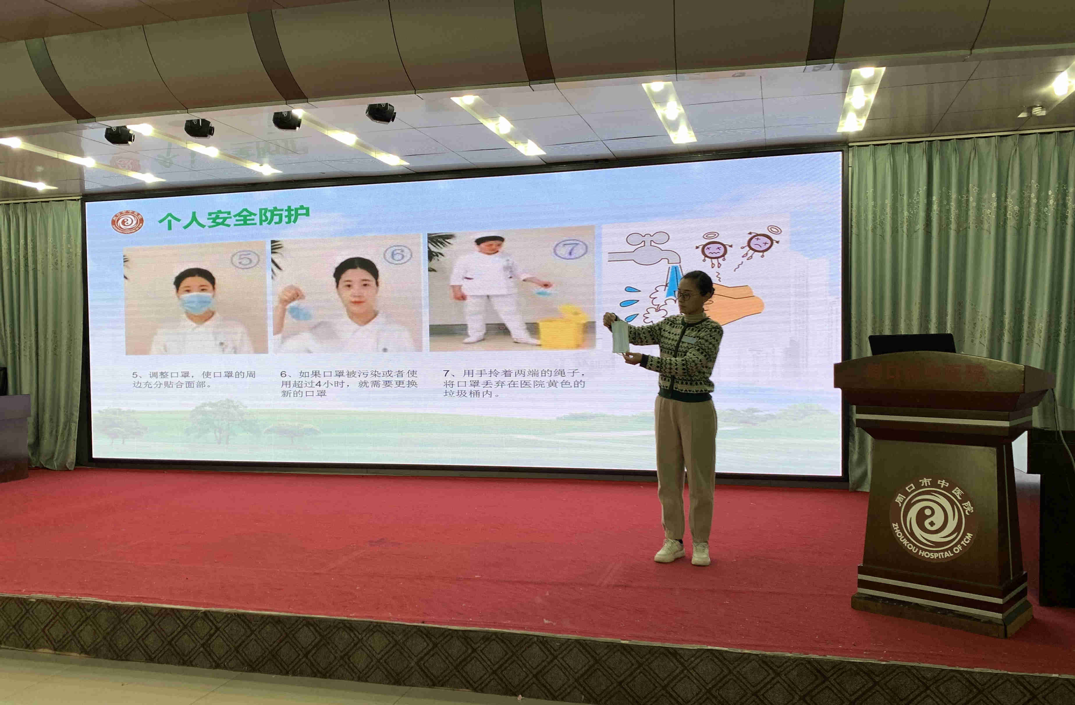培訓會由感控科宋俊娥老師主講,講解了清潔與消毒,醫療廢物收集,個人防護,疫情防護。強調了新冠疫情常態化個人行為準則:戴口罩,勤洗手,勤通風,少聚集,加強鍛煉,堅持晨、午、晚檢。確保各項措施落實落地,對標全面梳理防控工作中存在的問題和短板,切實堵塞防控漏洞,降低疫情傳播的風險,有備無患、防患于未然。