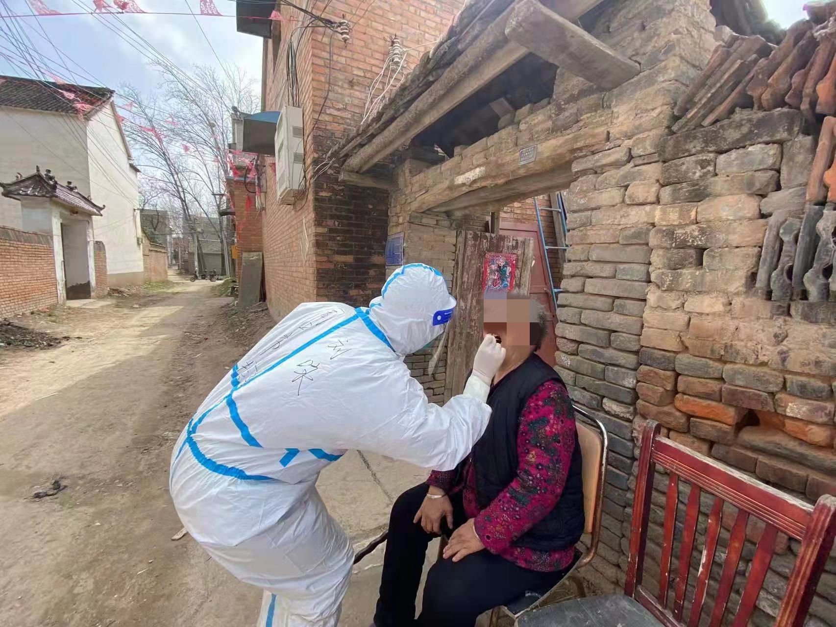 我們五點到達太康,徐寶麗隊長立即與接應的負責人聯系,迅速分解任務,三人一組。我們組分到了常營鎮常北行政村,剛到那里便布置場地,準備好采集和防護用品。“展筱依帶著志愿者先熟悉流程,劉永準備用物......”楊小雨組長有條不紊地安排著。當地村民排成排、列成列,保持著安全距離。志愿者也各就各位、各司其職,時而維持秩序,時而穿梭于人群。我們三人小組穿好了防護服,很快準備工作就緒,掃碼、采樣、封管、封箱等有條不紊地進行著。由于穿著密不透風的防護服,組長叮囑我們,如果出現頭暈、惡心等不適癥狀,立即告訴她。我們三人堅持了五六個小時,直至現場的村民核酸采集結束。接著我們便挺進鄉間小路、前街后街,入戶給年邁多病、腿腳不便的村民采集核酸。在緊張有序地采集中,第一天結束了,第二天又緊鑼密鼓地進行著,第三天亦如是。第四天我們被派至城郊鄉塘坊行政村,在那里同樣是掃碼、采樣、封管、封箱。入戶采集的人數也較多,我和同事們規劃著路線,走街串巷,不漏一人。我們用腳步丈量著村里的路程,感覺每一步都很扎實、很有希望。