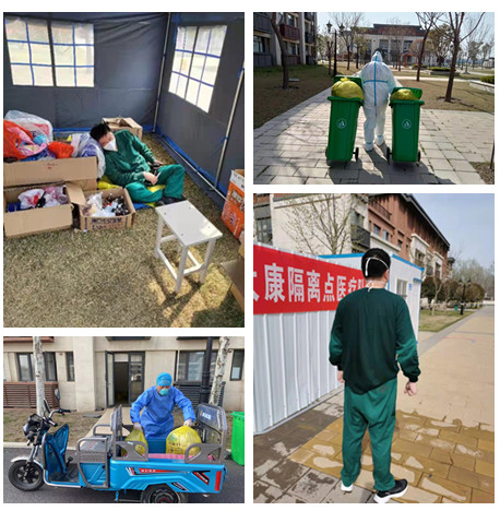 萬事俱備,于3月29號大家開始進入工作狀態:核酸采集、送餐、測體溫、分發中藥、消毒并轉運垃圾等,隊員們奔走的身影,汗水模糊的雙眼,濕透的衣服,臉上深深的勒痕等成為日常,也是前線最真實地寫照。雖然很疲憊,但更多的是責任與擔當,更多的是團隊的相互支撐與協助。日日夜夜,數百條微信記錄著隔離人員的點點滴滴:“醫生,我孩子發熱”,“我嗓子疼,咳嗽的傷害”,“我孩子身上起了皮疹,癢的難受,怎么辦?”“什么時候可以出去”等等。我們這里馬不停蹄地送藥,用微信不斷化解他們出現焦慮煩躁的情緒。我們熱情的態度、專業的藥物配置贏得了他們的信任,現在微信群里滿是“我吃了中藥,咳嗽好多了““孩子不燒了,再給我們發瓶中藥吧”“中醫院的藥很有效,嗓子不疼了,謝謝醫生”等等。看到滿是感謝的話,再苦再累也甘之如貽。