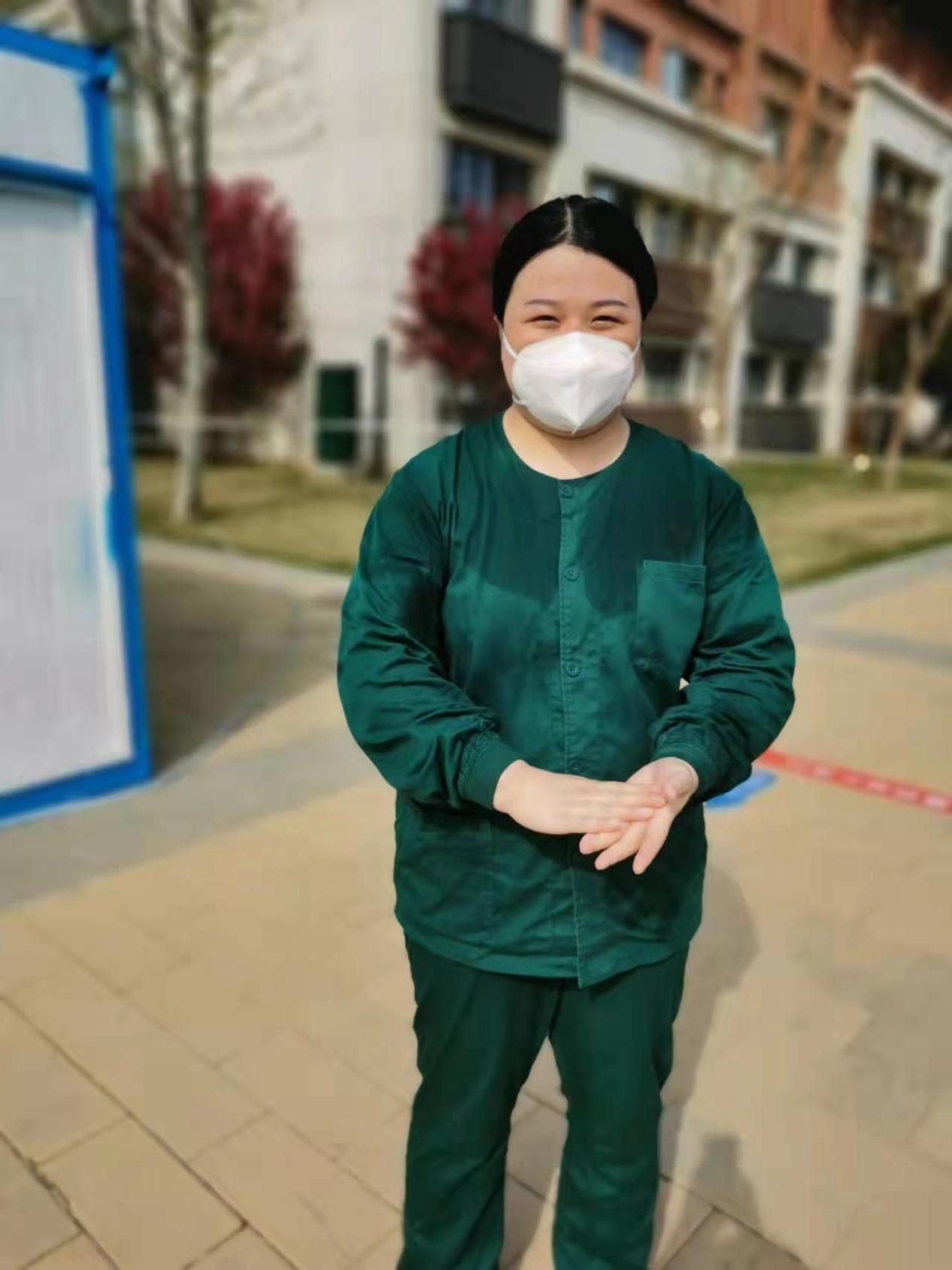 雖然辛苦,但是工作中也有很多暖心的是事情,印象最深的是501房,住著一位10歲的小女孩,在我們接管前,她的父母先后被確診陽性,剩下自己在隔離區(qū),也沒有手機,在了解了這種情況后,我們的領(lǐng)導及時地與她父母聯(lián)系,在領(lǐng)導的批準下,我們將她媽媽準備的手機拿給了她,讓她每天都能和父母視頻,并向她講解了為什么她被隔離,隔離期間我們都在,都是一家人,有什么需要都可以給我們說。我們每天送飯時都會與她隔著門聊上幾句,了解一下她的心理動態(tài),給予她堅定的信念。考慮到網(wǎng)絡的問題,領(lǐng)導們第二天就找人在隔離區(qū)安裝了無線網(wǎng),方便隔離區(qū)的人員使用。