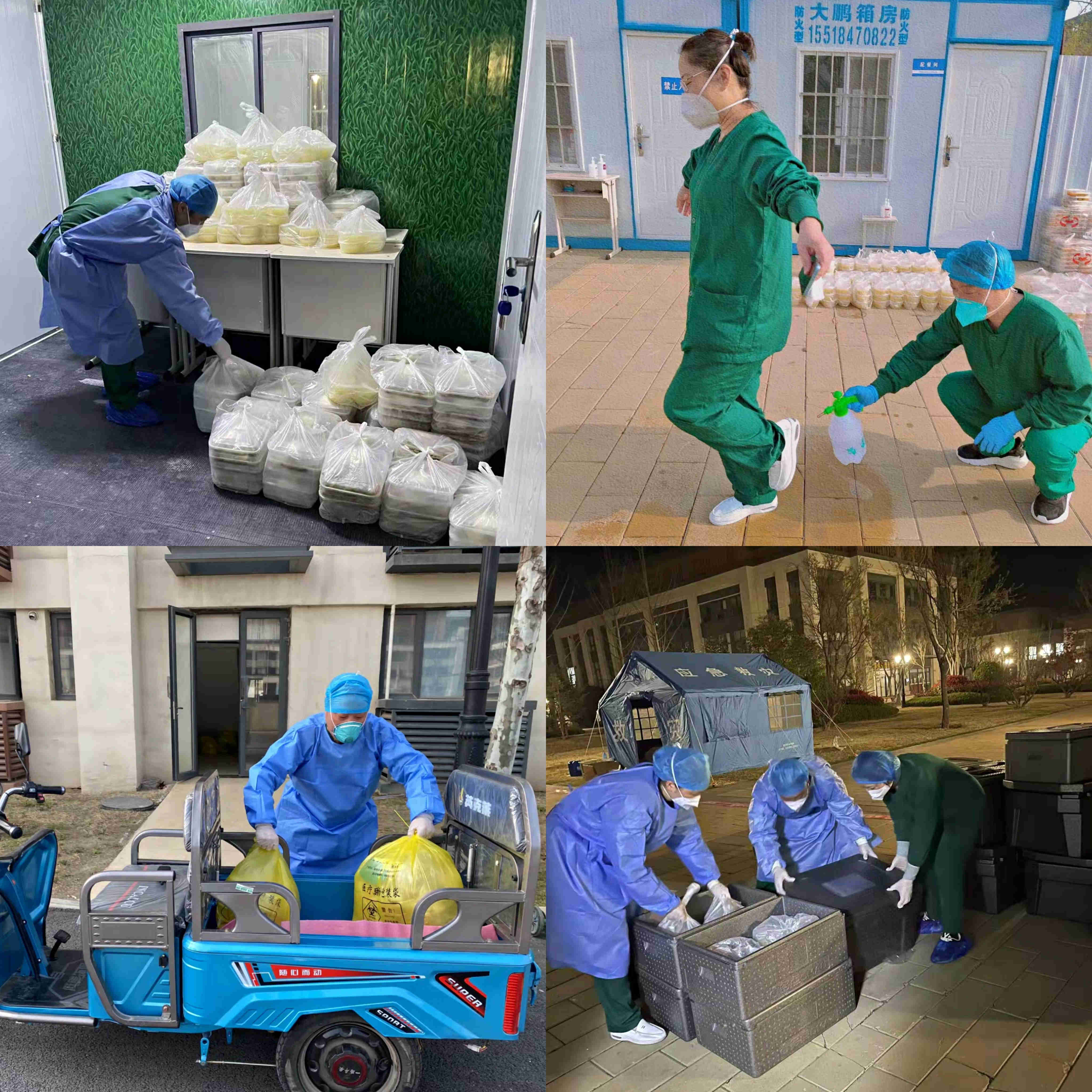 支援的的日子每一天都過得很充實,3月27日第1天的到達之后匆忙歸置一下物品,所有人便開始了穿脫防護服的考核,嚴格把關,確保每個人必須規范操作穿脫防護服,以達到“防疫止疫”。送餐組的各位老師每天凌晨還在統計隔離群里的人員所需要的物品。采集核酸的小伙伴們也是相互配合,互相體諒,在別的組需要幫忙的時候更是鼎力相助,絕不推諉,這一切無不彰顯著我們這個團隊的協作力、凝聚力;當然我們能在里面安心工作,完全也離不開后勤老師的每日辛勤付出。每天當我們從隔離區采集完核酸出來,都有來自于各位老師的溫柔“酒精浴”在等著我們。康紅磊,朱春燕老師每天都在默默的守護著我們,我們何時呼喚都有人應之。