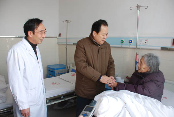 2月1日,周口市人民政府副市長李紹彬在周口市衛生局局長解冰山的陪同下來到周口市中醫院,慰問節日期間堅守在臨床一線的醫務工作者,為他們帶來了黨和政府的溫暖和關愛。李市長首先到心肺病區慰問全體醫護人員,對醫護人員節日期間犧牲與家人團聚的機會,在救死扶傷一線辛勤的工作表示感謝和親切的慰問,并為醫務人員送上花籃。隨后,李市長來到病房,看望了92歲高齡的住院病人趙大媽及家屬,李市長親切地詢問了患者的病情,向她們致以新年的祝福,并祝愿老人家健康長壽,早日康復。