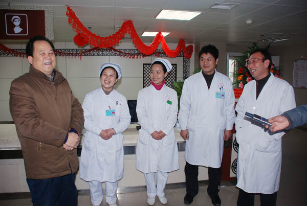 李市長又來到兒科病區,看望了節日值班的醫護人員,李市長說,春節本是與家人團圓的日子,而你們為了病人的健康,堅守在工作崗位上,我代表政府來看望大家,向你們表示感謝,給大家拜個早年。他說,病人對醫院的感謝就是對我們最好的回報。李市長來到病房看望了住院患兒及家長,祝小患兒早日康復,健康成長。