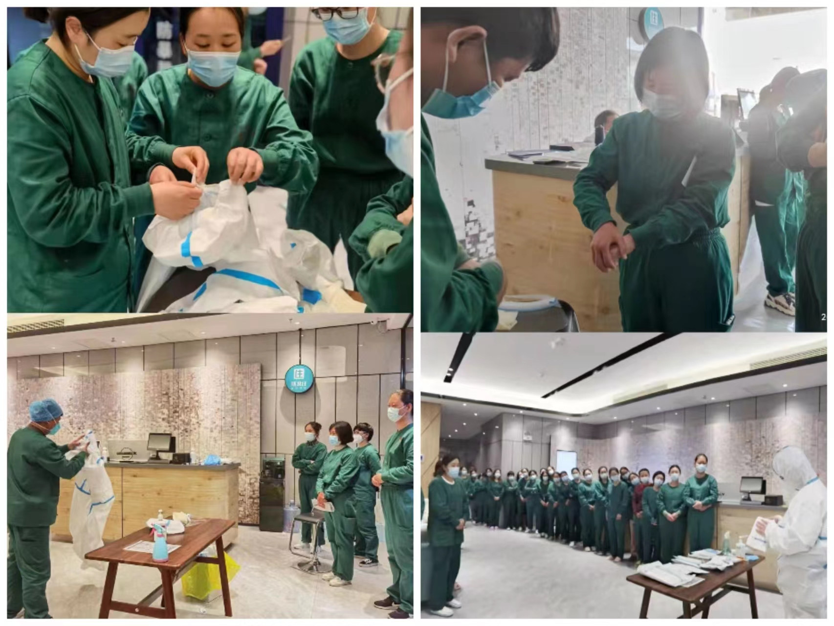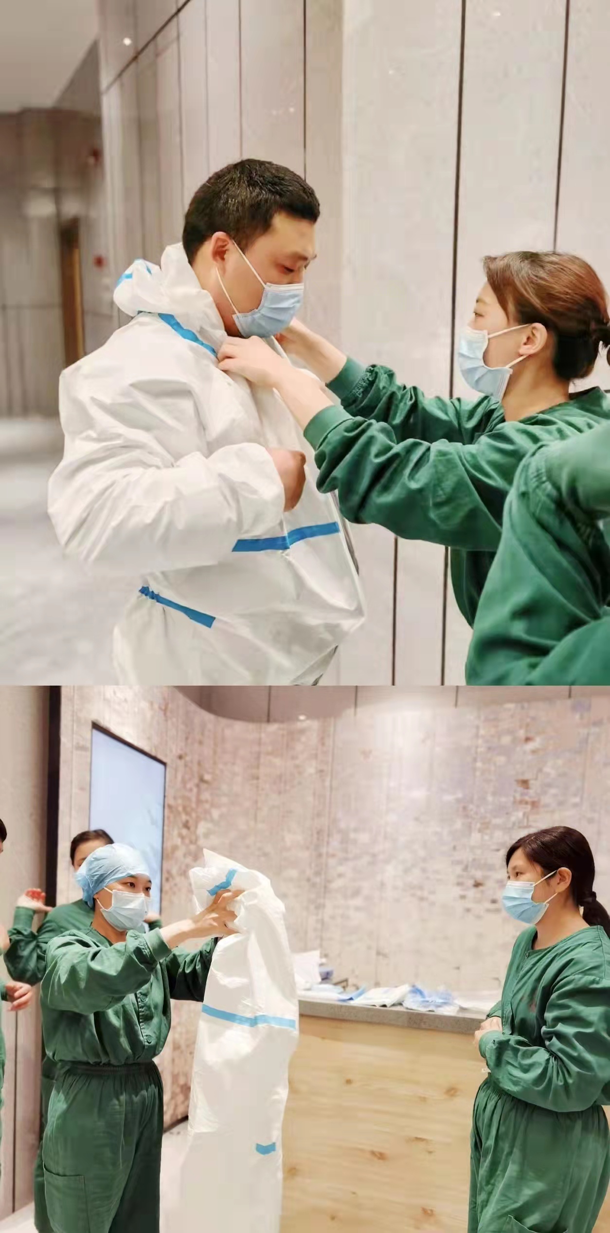 目前由徐寶麗主任和史航護(hù)士長帶領(lǐng)著我們這個小分隊負(fù)責(zé)著大梁社區(qū)居民的核酸檢測,而這個社區(qū)大多數(shù)都是不帶電梯的居民樓,每個小伙伴每天都至少要爬八九棟六層高的樓挨家挨戶的敲門采集核酸,最開始的兩天小腿疼到早上起床無法下地,但小伙伴們無一抱怨,甚至還相互開玩笑說“剛好減肥啦”。為了保證大家的“安全”,各位領(lǐng)隊老師無論時間多晚都會每天帶領(lǐng)大家在核酸采集工作結(jié)束之后練習(xí)防護(hù)用品的穿脫以及核酸采集的方式和部位,一遍一遍不厭其煩的指導(dǎo)、練習(xí),不但是為了更好的完成工作,更是為了我們自己和負(fù)責(zé)居民的安全。