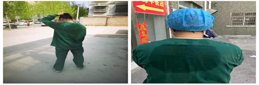近幾天,由于氣溫高達20多度,爬了幾棟樓后,小伙伴累的氣喘吁吁說:“姐,我的面屏花了,看不見下去的樓梯”,“小心點,我也看不見,一會到樓下了,我們站那吹會風,就會好點,就能看見了”。等風吹干面屏上的霧氣后我們繼續進行下一棟樓的采集工作。一天下來,我們臉上都是口罩的勒痕,身上的衣服也被汗水浸透。