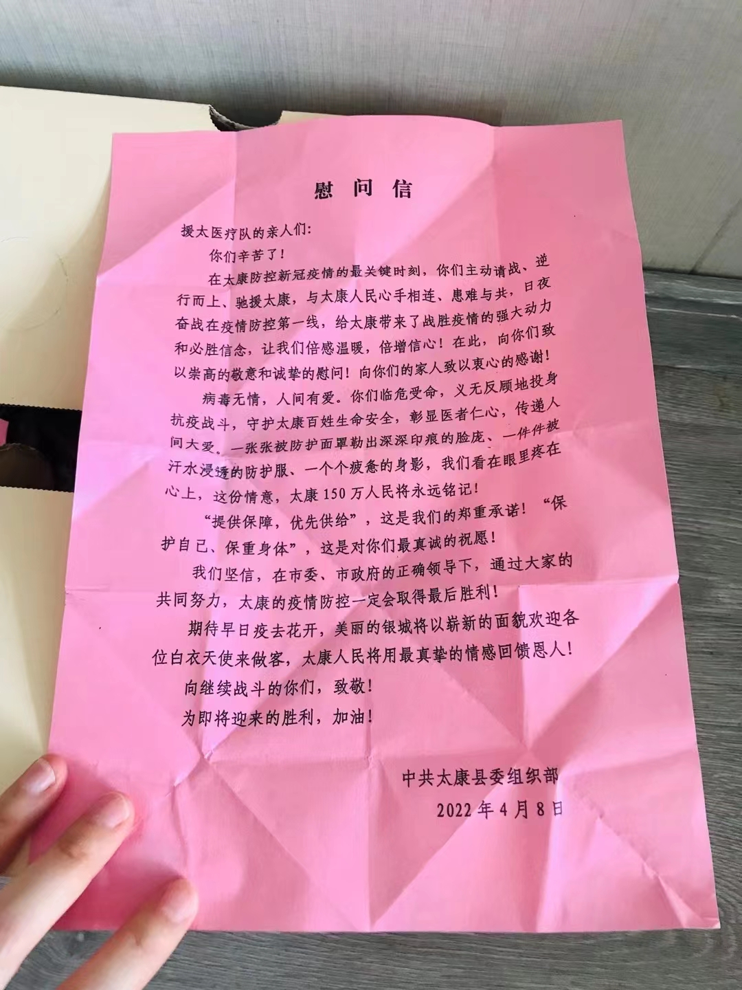 來自太康縣中西醫結合醫院全體的認同和贊美!感謝她們的幫助和理解!讓我們身處他鄉抗疫不孤單!