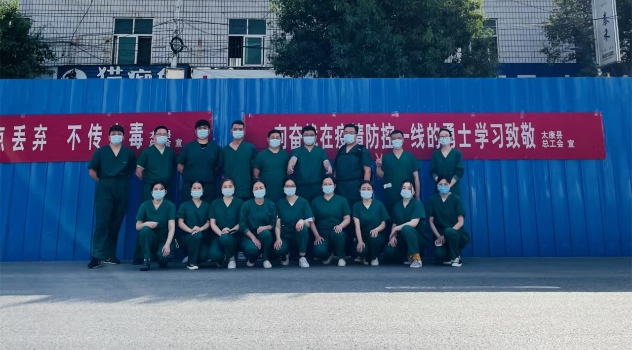 出發(fā)當(dāng)日,天光微亮,我們緩緩駛?cè)胩担?chē)駛?cè)霃V場(chǎng)后,我們和第一批支援太康的醫(yī)院同事們進(jìn)行了間隔兩米的匯合。他們的樂(lè)觀和勇敢給了我們勇氣,整個(gè)隊(duì)伍也開(kāi)始活躍起來(lái)了。領(lǐng)取完物資,分配好任務(wù)社區(qū),大家因?yàn)橄嗖顭o(wú)幾的年齡,相同的職業(yè),很快就熟絡(luò)起來(lái),整個(gè)隊(duì)伍顯得很有活力。