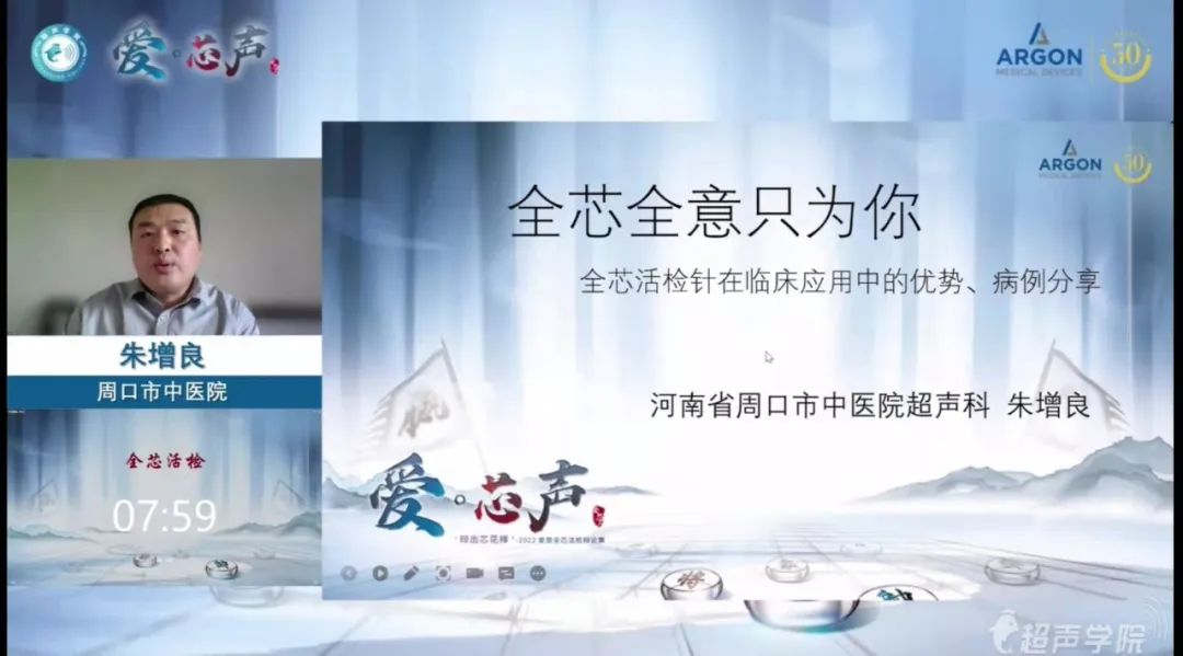 周口市中醫院超聲科朱增良受邀在2022年“辯出芯花樣”全芯活檢VS側切槽活檢辯論會上做經驗分享