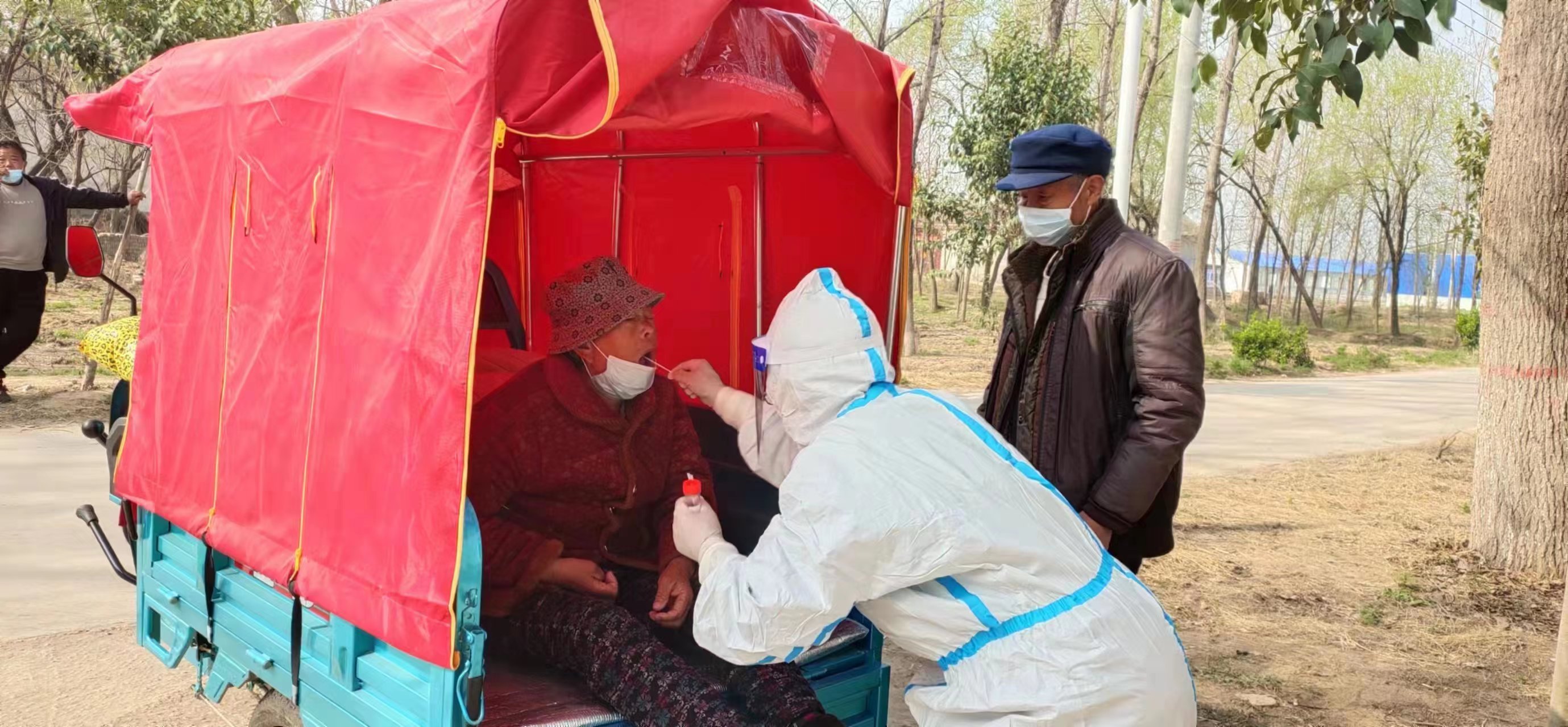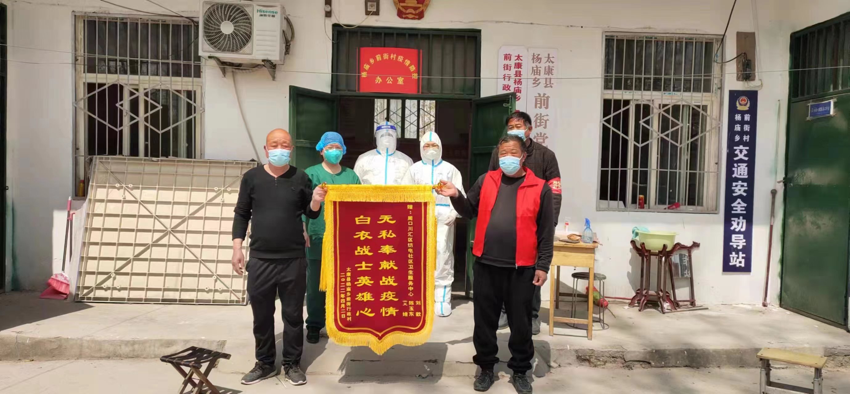 我們每天三點起床集合,早上6點到太康鄉政府,匆匆吃點早飯,對接鄉干部接我們到村里,坐三輪車挨村挨戶上門居家采樣。二十二天的辛勤付出,全鄉動態清零。紡電社區10人團隊:共采樣1718管,29883人次,得到村干部的頌贊和認可,并送錦旗以表謝意!