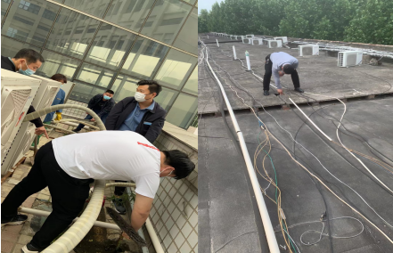 4月24日下午大樓管理科科長楊立志帶領科內郭立志、朱旭、王博文、劉四成、李淼對我院1號樓、2號樓、3號樓樓頂,存車處充電樁、高壓電區域、排水管道、地下室、院內各個低洼處、安全井蓋等重要部位、重點區域進行安全大排查。重點檢查了各樓樓頂的排水口是否通暢,并對不通暢的下水口進行了疏通;對室外線路進行了規整固定;對室外空調機等進行了排查并進一步加固;排查過程中發現地下室排水泵損壞,及時進行了維修。