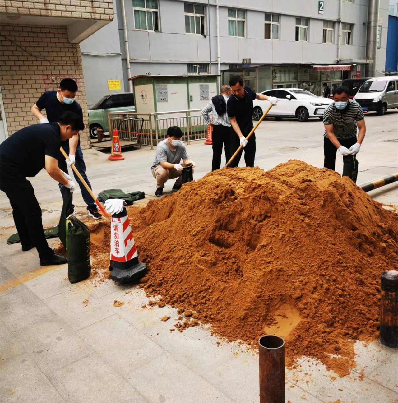 楊科長帶領科室人員新分裝防洪沙袋200袋,對原有沙袋進行了封口加固,為預防突發降雨準備了充足的防汛物資。
