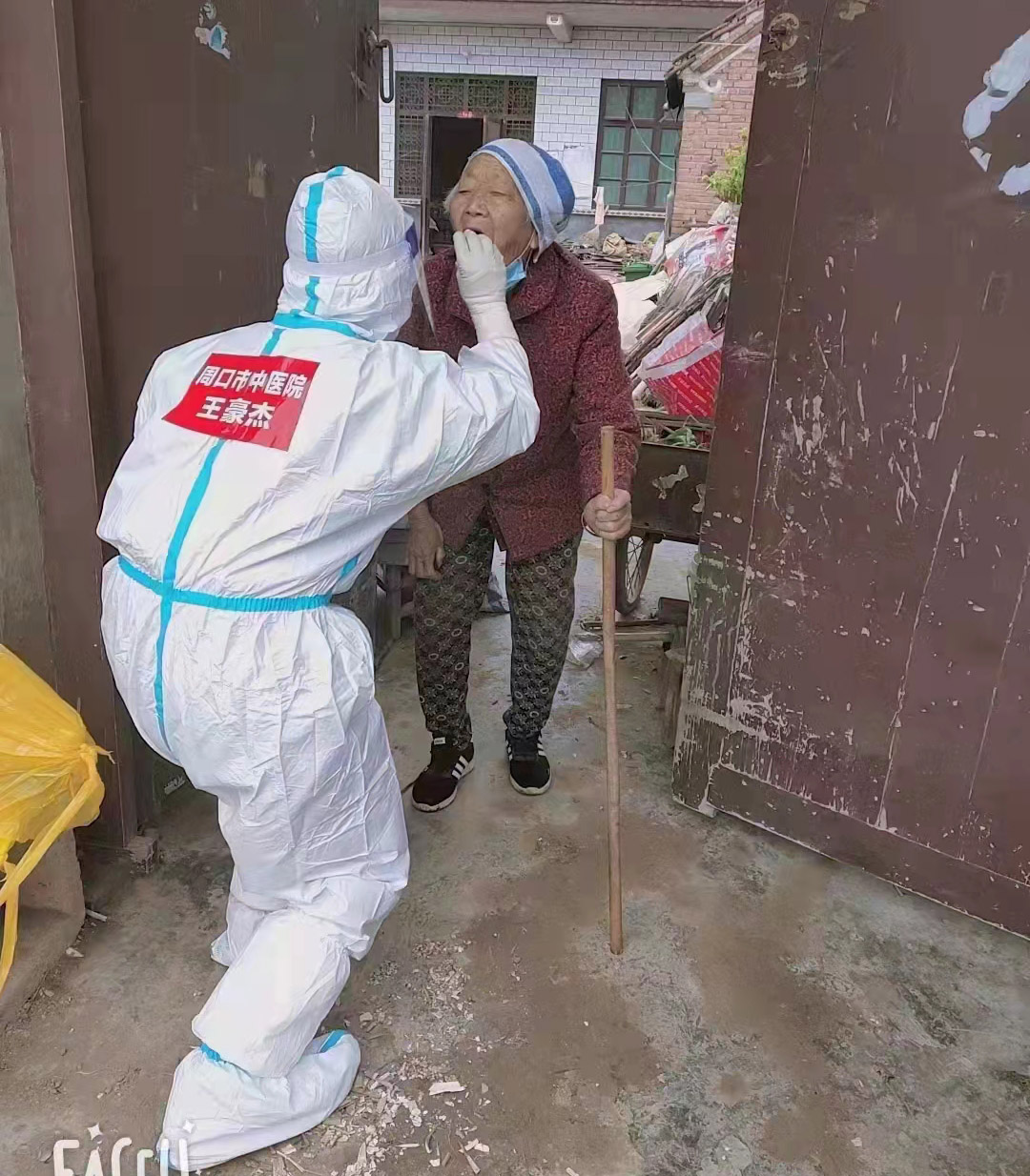 第一天,我們到的是白集鎮(zhèn)鹿樓行政村,這個(gè)行政村下轄多個(gè)自然村,人口較多且分散,居民胡同橫七豎八,鄉(xiāng)間小路錯(cuò)綜復(fù)雜,無(wú)形中增加了我們的工作難度。我們立即準(zhǔn)備好所需物品,穿上防護(hù)服,進(jìn)行采集,中間沒(méi)有片刻休息,等任務(wù)結(jié)束,已接近下午1點(diǎn),采集總?cè)藬?shù)超過(guò)千人。雖然身心俱疲,被汗水浸透了衣裳,被口罩勒紅了臉龐,面對(duì)純樸村民,聽(tīng)著他們一聲聲的“謝謝”,此刻疲憊早已拋之腦后。