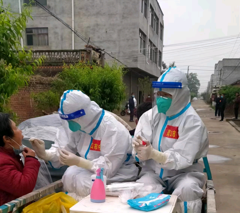 我迅速整理好自己的心情,全身心的投入到工作中。兩人一組,入戶采集核酸。汗水濕透了衣衫,面部有了深深的壓痕,不言苦,不言累,每天高標準完成核酸采集任務。受到了鄲城人們的夸贊。