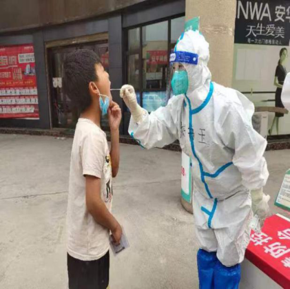 我們到達(dá)鄲城后,兩人一組,我和同科室的邵康醫(yī)生一組,進(jìn)行和社區(qū)工作人員協(xié)調(diào)溝通,核酸檢測(cè)。采集過(guò)程中,我們配合的非常默契,攜帶物資,重的東西,卲康就積極主動(dòng)的背起來(lái)。總是有小朋友過(guò)來(lái)跟我們說(shuō),謝謝你們。有的拿著手機(jī)老師正講著網(wǎng)課,下來(lái)做核酸。我身為人母,我看到他們就想起我的孩子。作為一名醫(yī)護(hù)工作者,當(dāng)下能做的就是在有限的時(shí)間內(nèi),采集更多人的核酸,趕快篩查,盡早解封,讓孩子趕快返回校園。