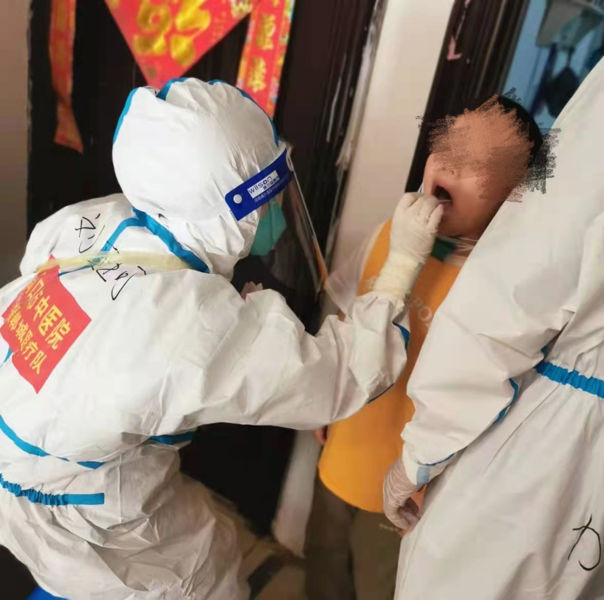 5月6日凌晨3:30出發,到達鄲城后我們分工迅速進入工作狀態,對所負責的小區進行入戶核酸檢測。因為我們隊負責的是老舊小區,條件有限,上樓下樓成為常態,但我們并沒有抱怨,越是艱難,越是勇往直前,在和當地工作人員的默契配合下圓滿完成核酸采集任務。