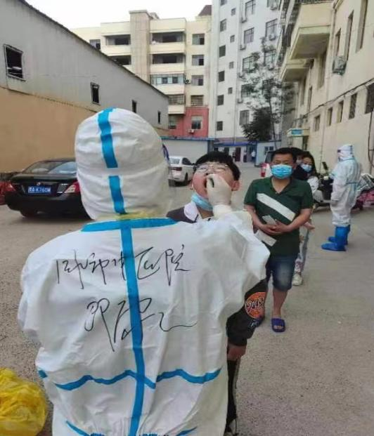 凌晨三點出發,第一站到達鄲城以后,我們便馬上投入到了“戰斗”中。天氣逐漸熱了起來,穿上防護服的我們更加悶熱,卻絲毫不敢放松,不能讓病毒有可乘之機。核酸采集工作早一點完成,潛在的危險就能少一分。