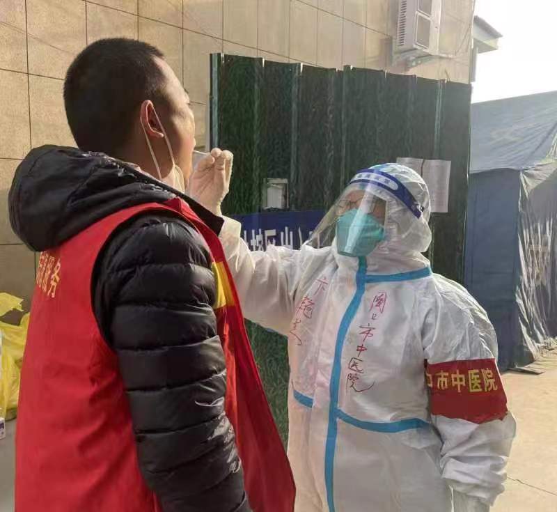 卞醫生是我們組里面年齡偏大者,可是卻有一顆童真的心,總會給我們緊張的工作,帶來一份閑適。卞醫生工作很認真,嚴格按照操作流程,完成每一步工作,但又不失人間煙火氣,總是用幽默的口氣給我們說唱:政府讓我來支援,我到太康轉一轉,穿上防護服,開始采核酸,新冠病毒全干翻……于是在她詼諧幽默的說唱聲中,我們緊張、浮躁的心安靜了下來,繁重、枯燥的工作又變得輕松、愉快起來!卞醫生就是我們中的百靈鳥、開心果,用她童真的心態影響著身邊的每一個人,給周圍的一片灰暗涂抹上五彩斑斕的顏色。在卞醫生的說唱聲中,太康疫情趨于緩解。