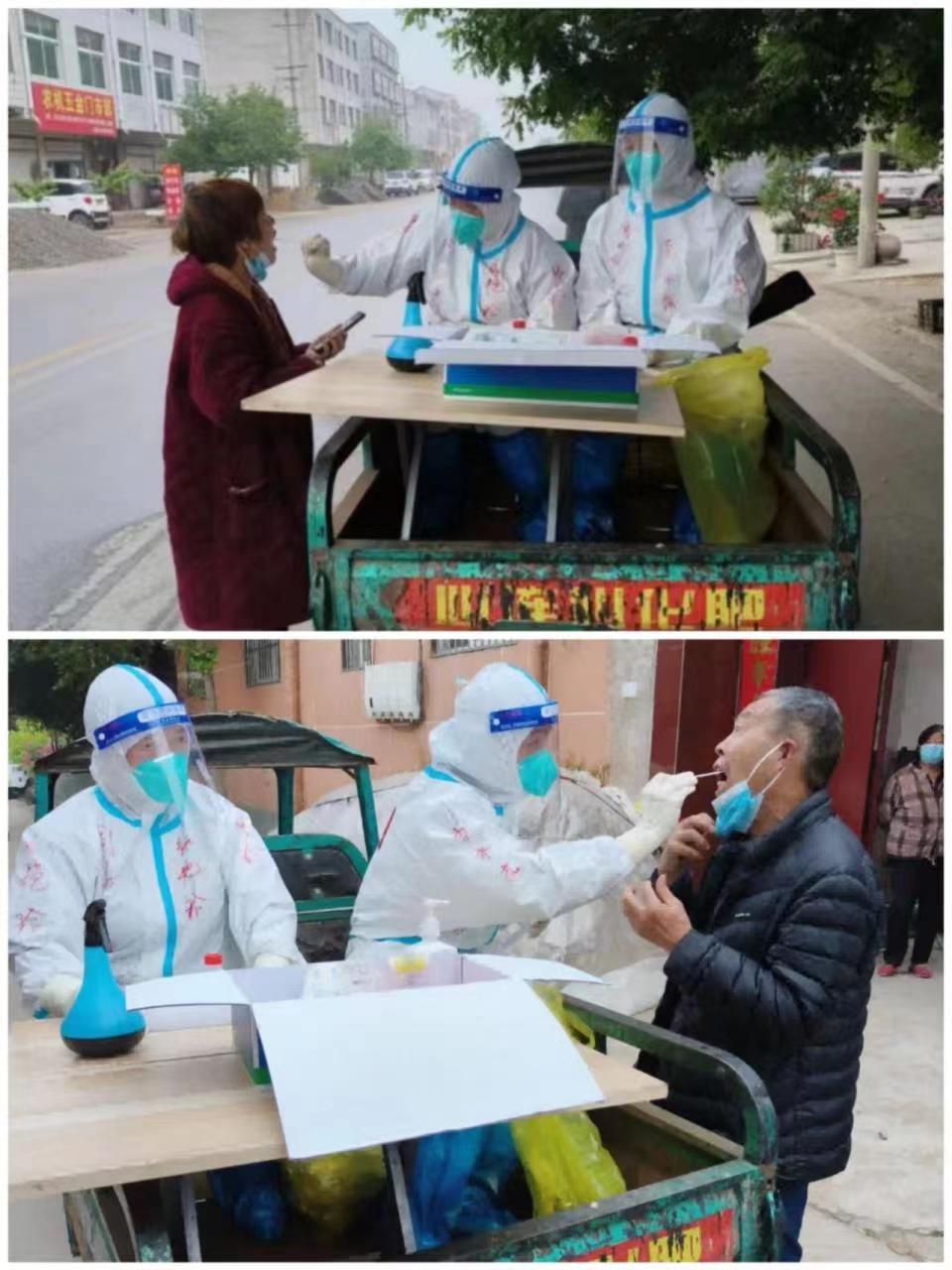 到達(dá)鄲城后,立即分為兩人一組,我和我的隊(duì)友王永振和社區(qū)工作人員迅速協(xié)調(diào)溝通后,開始進(jìn)行入戶核酸檢測。在采集過程中,我們配合得非常默契,每一次采集都按照操作標(biāo)準(zhǔn)。“請您摘下口罩,張大嘴,頭后仰”,伴隨一次次溫馨的提醒,一遍遍的溝通,核酸采集有序進(jìn)行著,待采集完最后一人,才發(fā)現(xiàn)腰酸背痛,嗓音沙啞,臉上都是深深的勒痕,但我們累并快樂著。