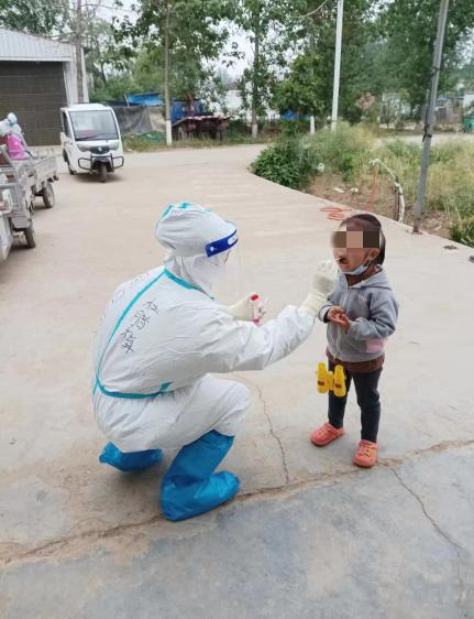 我和同事賈磊搭檔,負責一個自然村,要完成400位村民的核酸采集工作??纯磿r間,此刻已是5:10分,伴隨著此起彼伏的雞鳴,同事敲開了第一戶居民的家門。那是一位臥病在床的大叔,他努力配合核酸的樣子讓人動容。街道上,一個比我女兒小兩三歲的小女孩,乖巧懂事地張大嘴巴,做完核酸還不忘靦腆地說一聲“謝謝”。想到同樣因為疫情停課在家的女兒,我心中五味雜陳。作為媽媽,此刻我不能陪伴左右,對孩子既心疼又愧疚,但是作為一名醫護人員,我希望快一點,再快一點完成核酸采樣,爭取盡早阻斷疫情的傳播,讓沈丘縣的鄉親們早日回歸正常生活。