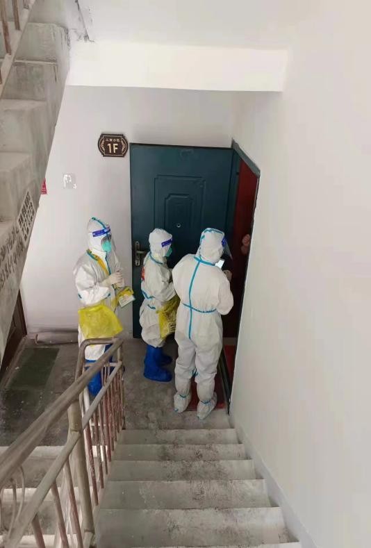 此次支援任務為入戶采集,每一天要走很多路,每一處都要爬很多樓梯,每天重復著單調動作,每一次我們都按照核酸采集標準流程確保采樣準確。我們工作細致、周到,做到不漏掉一家一戶,不漏掉一人,大家彼此默契配合。盡管防護服內汗水在流淌,每一位志愿者卻毫無怨言。