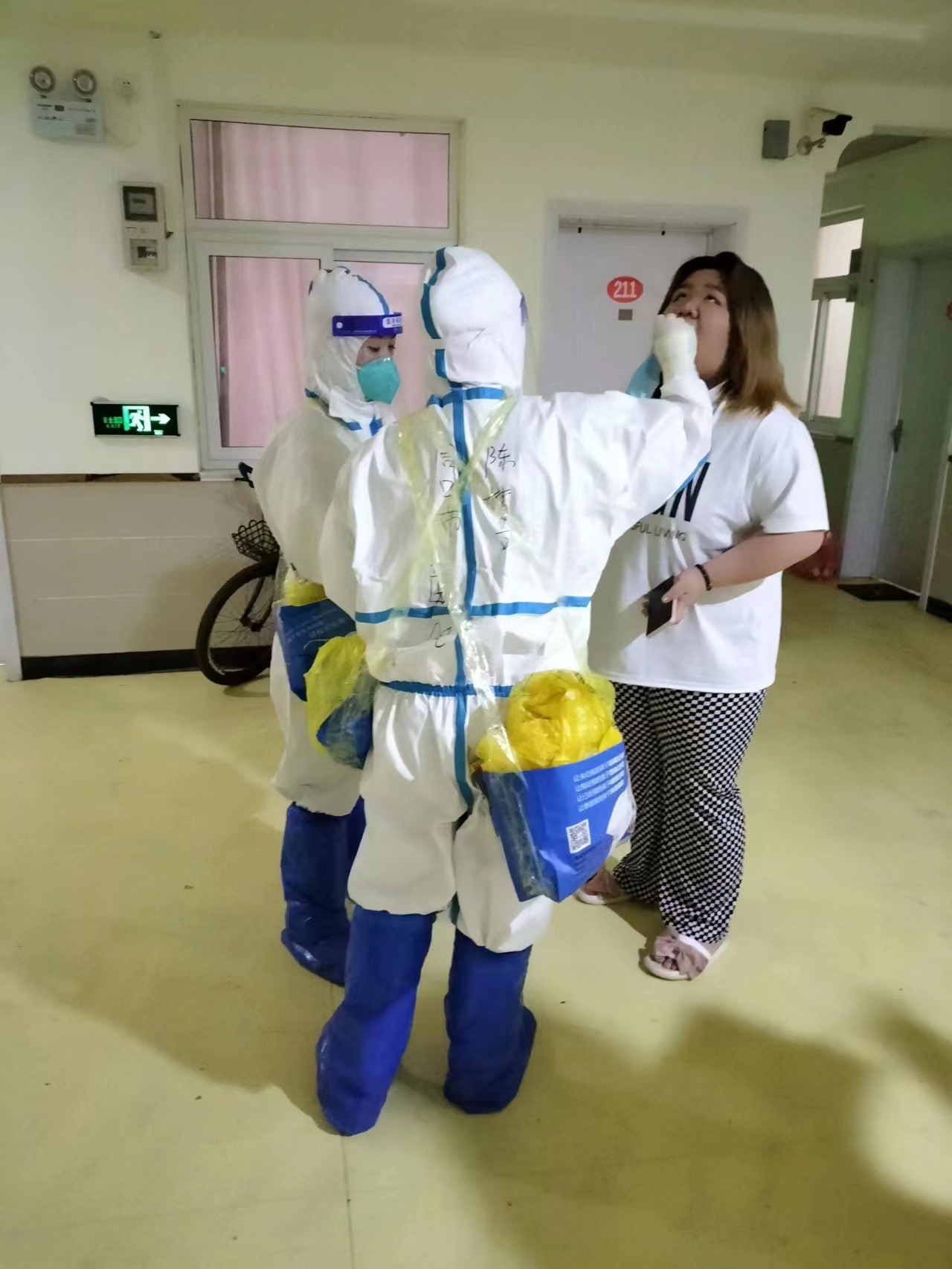在為期7天的抗疫工作中,我也時常被一些溫暖的事情感動著,有來自當地群眾溫暖的話語,有恰逢母親節時收到的鮮花和卡片,還有和我們并肩在一線其他部門的“戰友”們的溫暖舉動。記得有一次,因有疑似病例,我們需要去鄲城中棉小區入戶核酸采樣,社區工作人員心疼我們每天采樣辛苦,為了讓我們節省體力不空跑,她們堅持先一層一層的去爬樓梯、敲門,每家每戶進行確認,確定有住戶后再讓我們上樓采集,看著他們氣喘吁吁的樣子,我們也都心中涌起陣陣暖意,濕了眼眶。