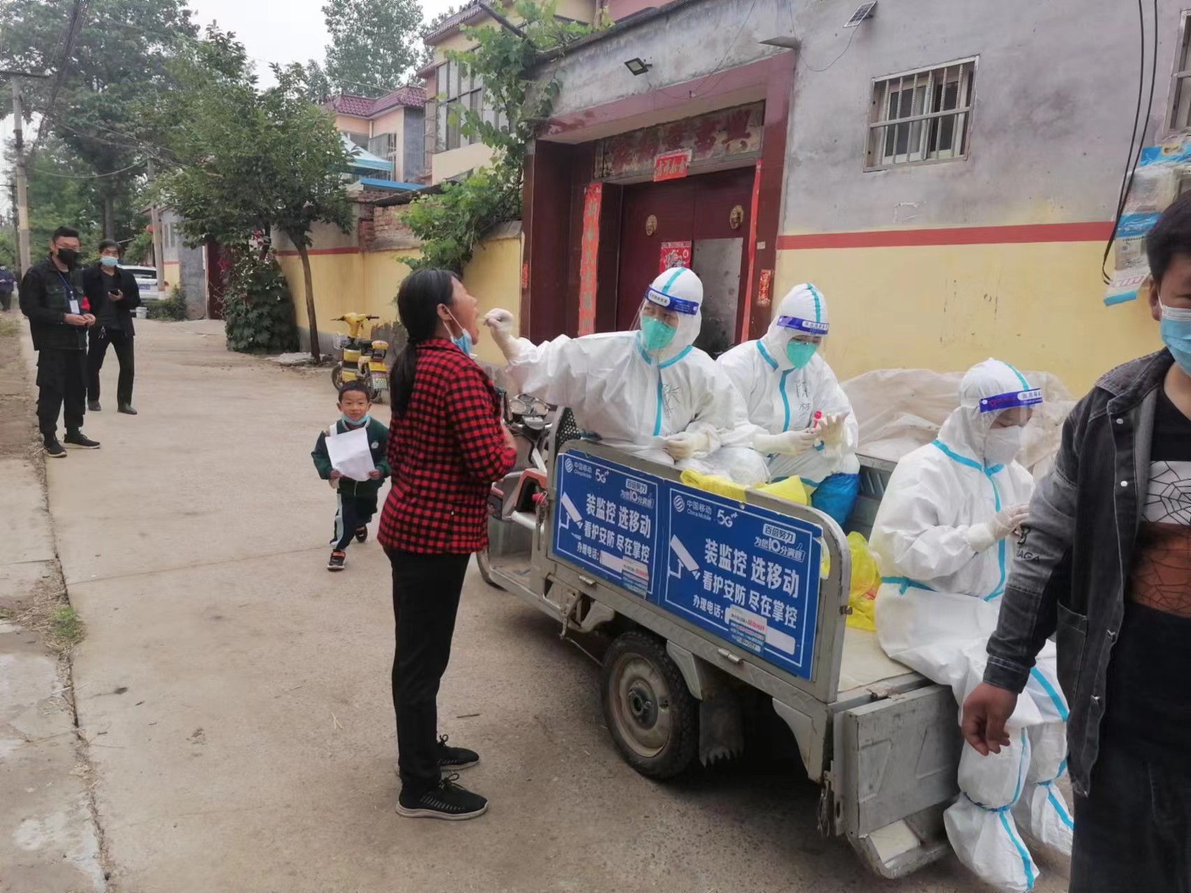 5月6日早晨6點,到達鄲城,根據當地疫情指揮部的統一安排,我們分布到各個社區核酸采樣點迅速進入“戰斗”狀態。在這個沒有硝煙的戰場上,我們要用最快的速度盡可能采集更多核酸樣本,在最短的時間內協助完成潛在病例的篩選。時間在流逝,桌上的試管一排一排的擺滿,看著采樣桌后有序排隊的群眾隊伍,我們全神貫注,要求自己采樣動作再穩一些、再快一些。手消、采樣、下一個;手消、采樣、下一個......直至最后一位群眾采樣完成,才發現厚厚防護服下的自己腰酸背疼、汗流浹背。