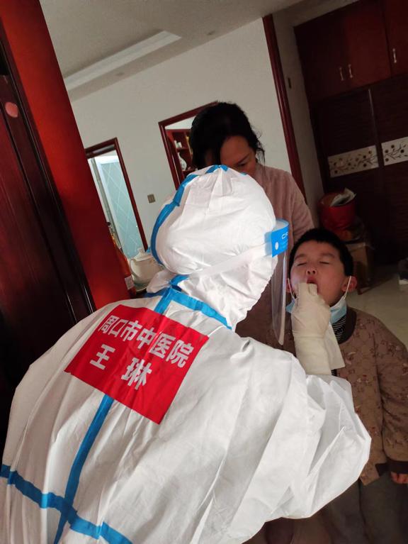 我叫王琳,是周口市中醫院腦外科的一名護士,2022年3月22日晚八點,剛下班接到電話說要去太康支援采核酸,之前我曾參與過川匯區和商丘全員核酸檢測,所以這次也沒有猶豫,主動請戰。接到通知的那天晚上,給爸媽打了電話,他們一再叮囑我要注意安全,做好防護,掛斷電話,簡單的收拾一下生活用品,躺在床上卻睡不著。第二天凌晨三點走在去醫院的路上,天是黑的,風是涼的,街道是安靜的。到達太康后,我們每天三點起床集合出發,從開始的城郊鄉到縣城中心,連續奮戰了二十二天,雖然很累,但是每次采集核酸的時候聽到他們說“你們辛苦了,謝謝你們來支援太康”,心里很是溫暖,瞬間又滿血復活,精神抖擻。看著小朋友們一個個稚嫩的臉龐,封閉在家中,積極配合核酸檢測,真是心疼他們。一天,一位小朋友畫了一幅畫給我們,拿著這幅畫感覺再辛苦也是值得的。因為病毒,大家可以被隔離,但溫暖不會被阻隔,我們是他們最親的陌生人。后來我又參加了支援項城核酸采集中,第一天到達項城,正直烈陽高照,緊急分配好任務,迅速投入工作,到達當地村衛生室,村民已經有序的排好隊伍,我們沒有耽擱,快速穿好防護服,開始了采樣工作,當天溫度高達三十多度,剛穿上防護服,里面的洗手衣已經被汗浸透,但是顧不了那么多了,在村民和村支書的大力配合下,我們很快完成了采樣任務。
