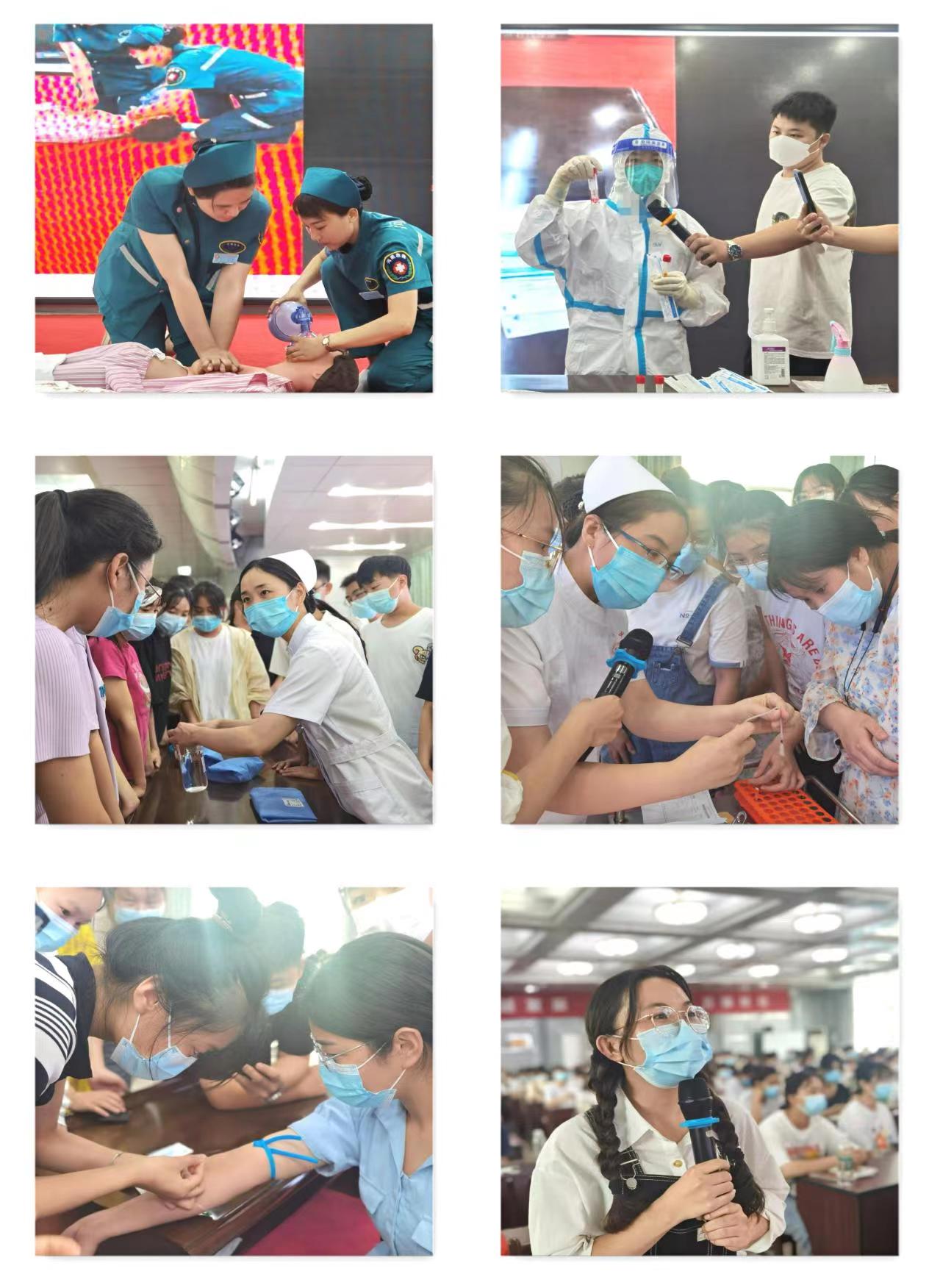 護理技能操作培訓內容:單人徒手心肺復蘇、雙人心肺復蘇、無菌操作技術、靜脈采血技術、密閉式靜脈輸液、心電監測技術、胃腸減壓技術、血糖儀監測技術、導尿技術、穿脫防護服、咽拭子采集技術等培訓現場,同學們熱情高漲,師生互動頻頻。