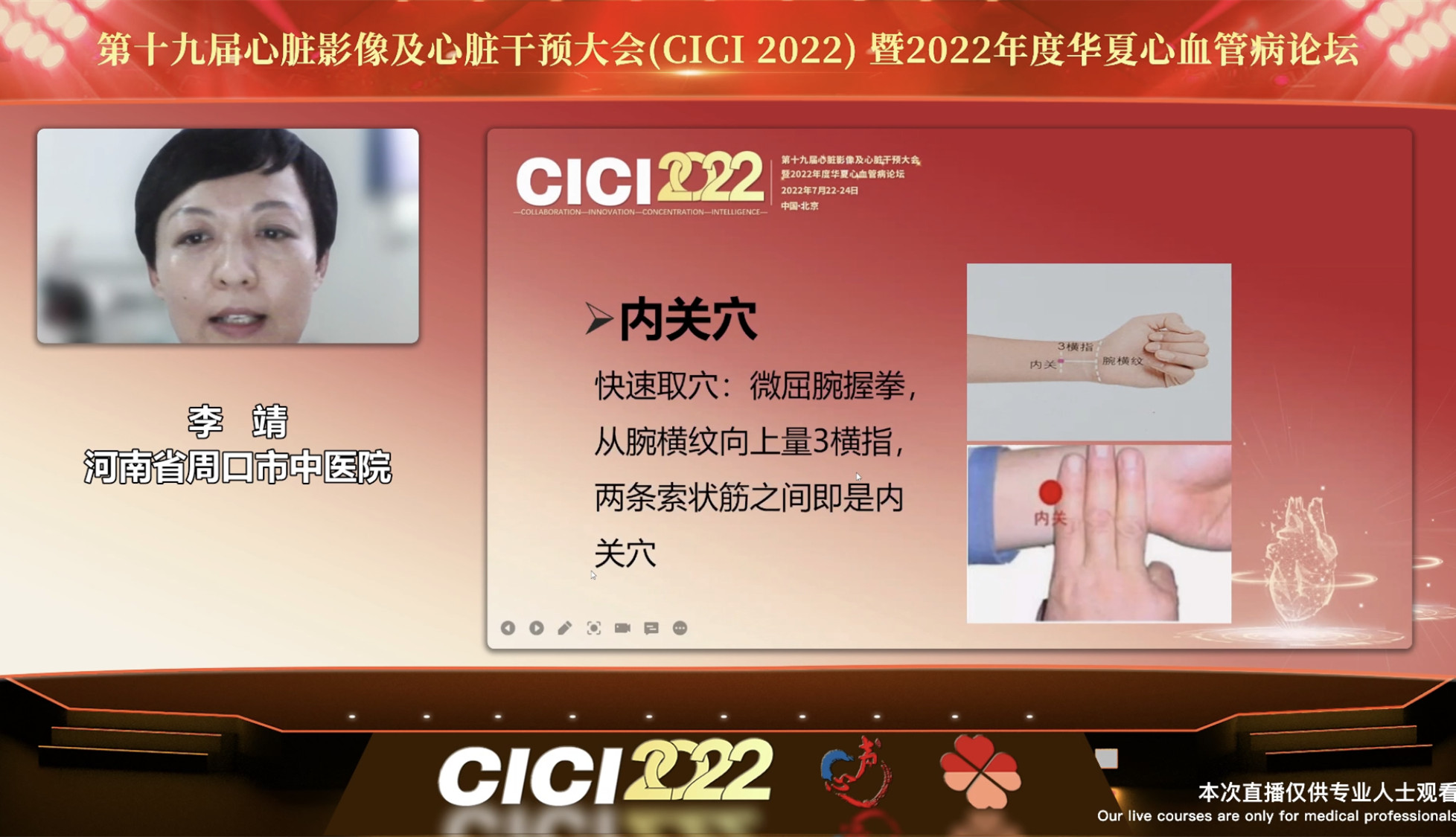 我院李靖主任分享了《內關穴在運動試驗中的應用》。分享兩名50多歲女性患者在運動過程中,通過按壓雙側內關穴,取得的良好效果。經過多次在運動試驗中的應用,發現按壓雙側內關穴可以有效預防控制運動試驗過程中惡性心律失常的發生,從而降低操作醫生的風險,也大大的避免了被檢者在運動試驗中惡性心律失常事件的發生。此次病例分享是首次將中醫穴位治療與心電圖檢查相結合,代表著中醫穴位治療不僅在臨床治療上可以應用,在心電檢查中也能有效發揮中醫藥優勢作用。