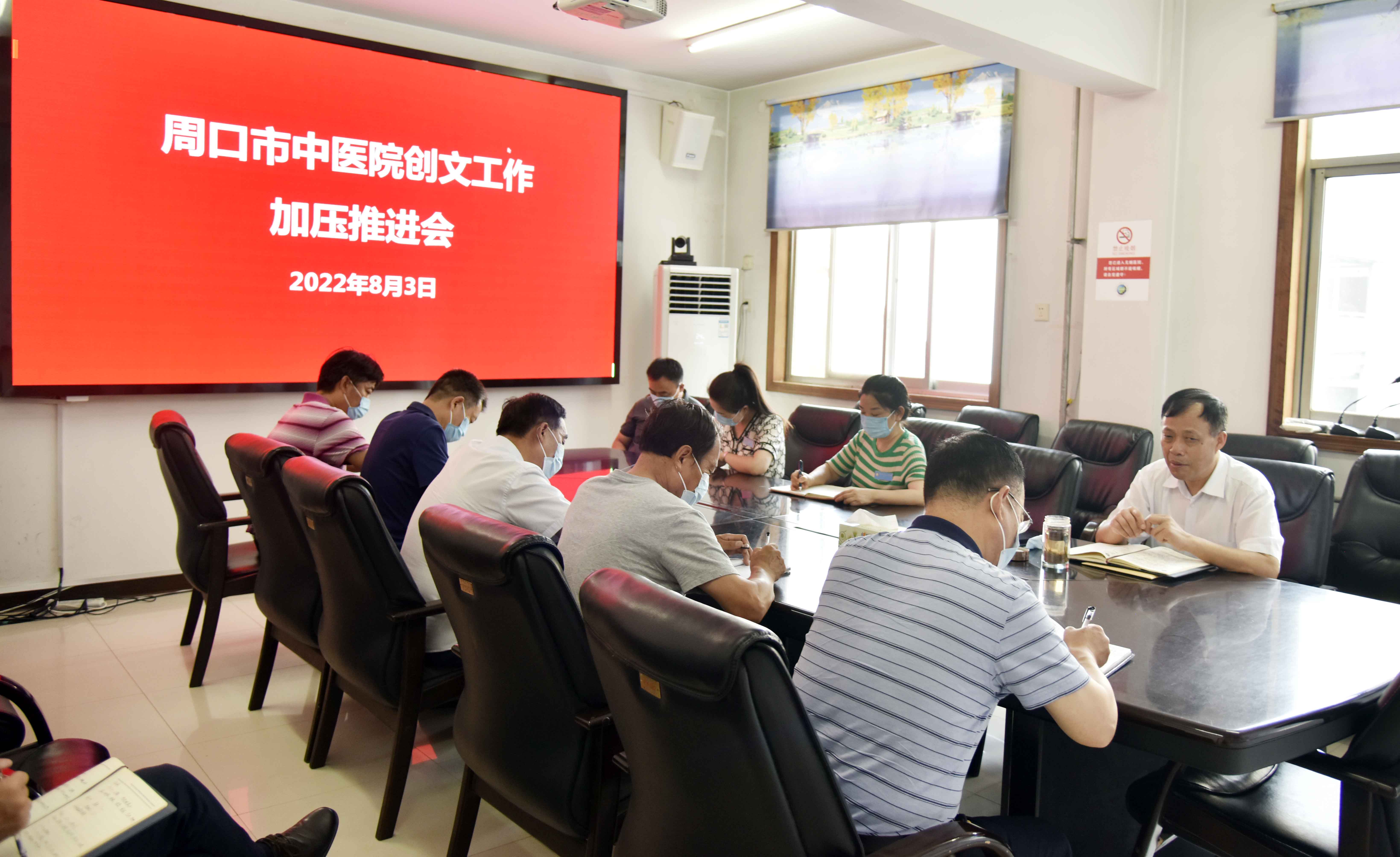 2022年8月3日上午,周口市中醫院在行政樓三樓會議室召開創文工作加壓推進會。號召全院黨員干部職工凝心聚力抓好創建全國文明城市各項工作,全力以赴打好創文迎檢攻堅戰。醫院黨委書記劉廣明及相關職能科室負責人參加會議。
